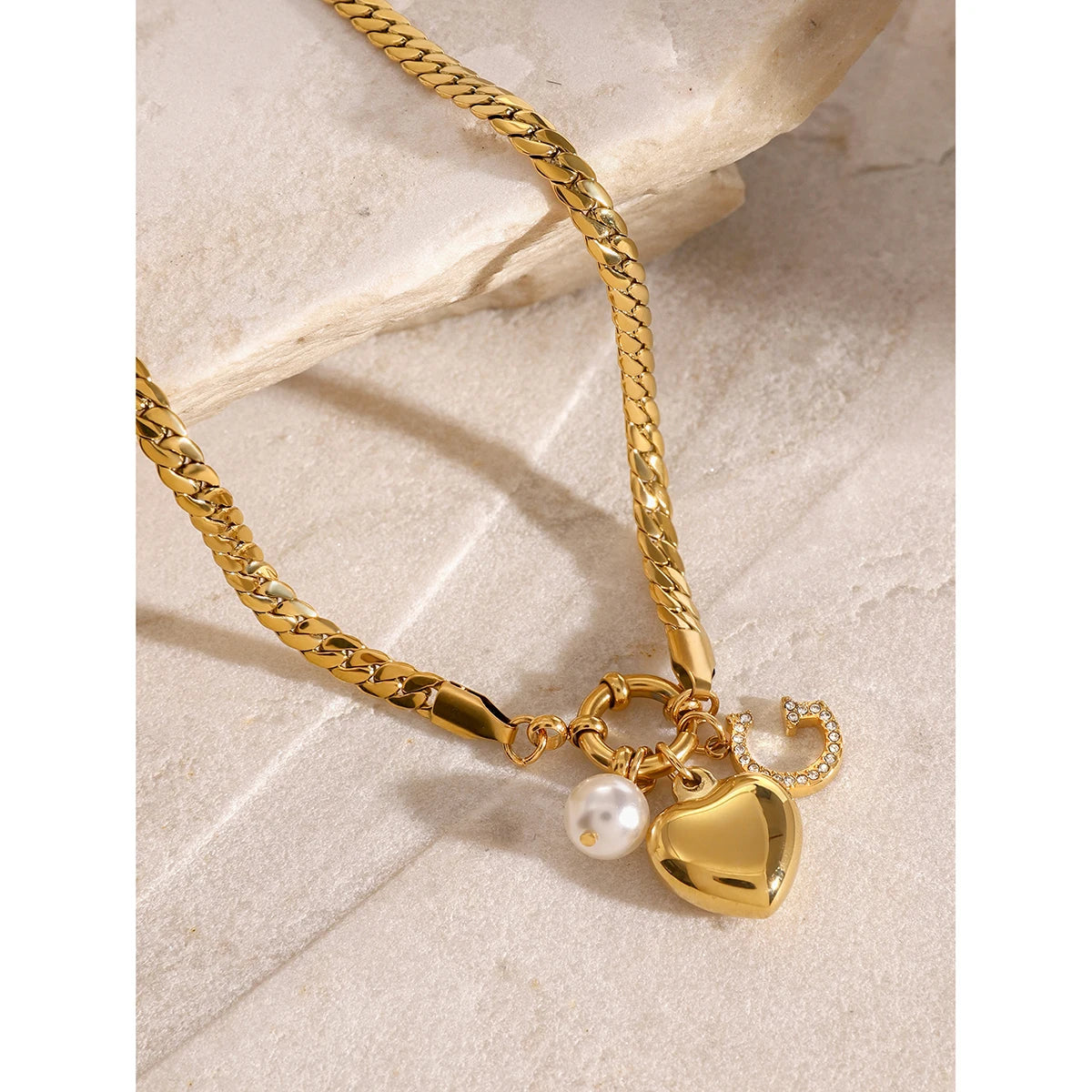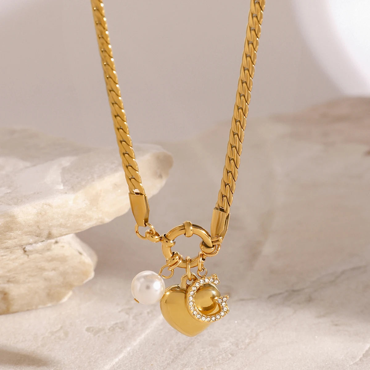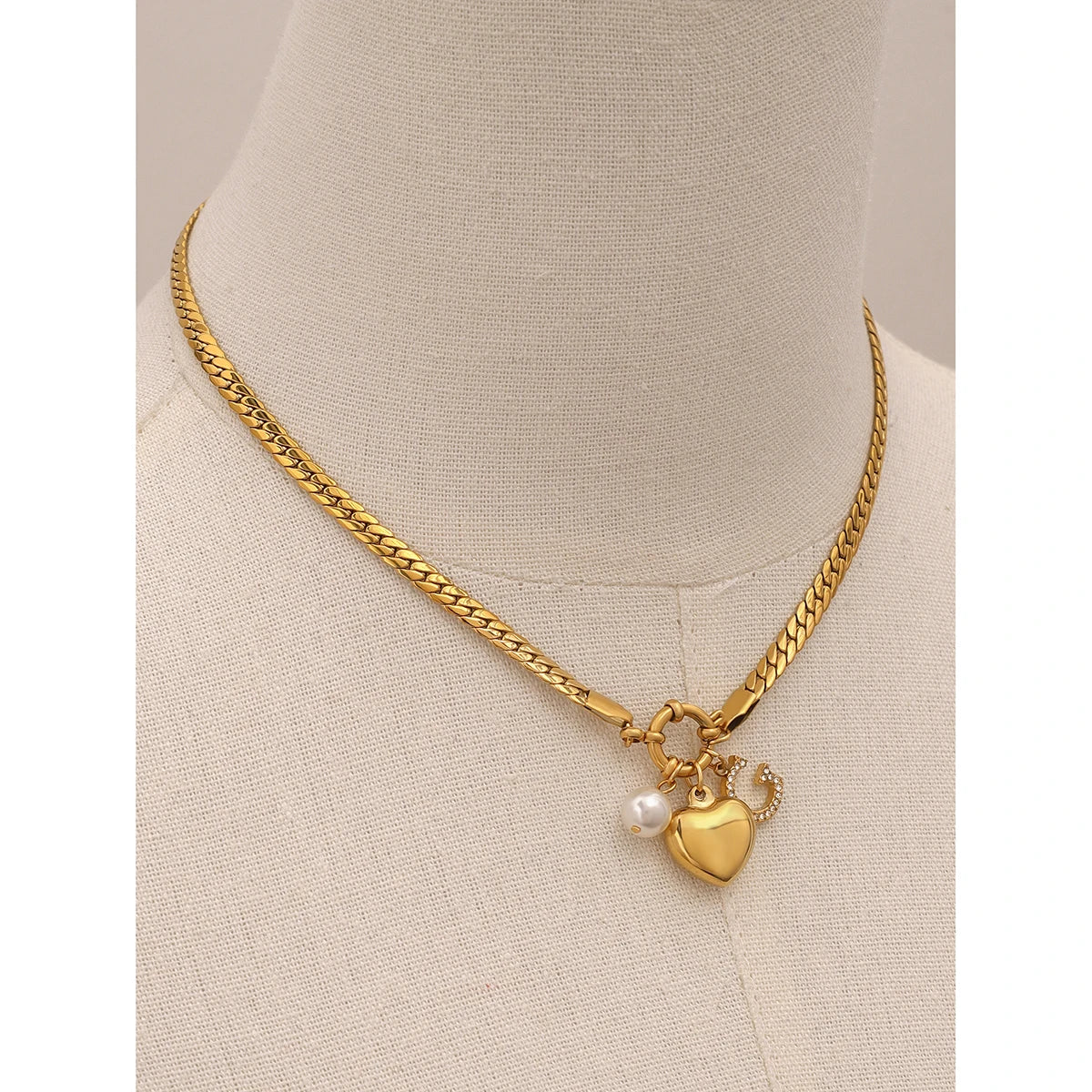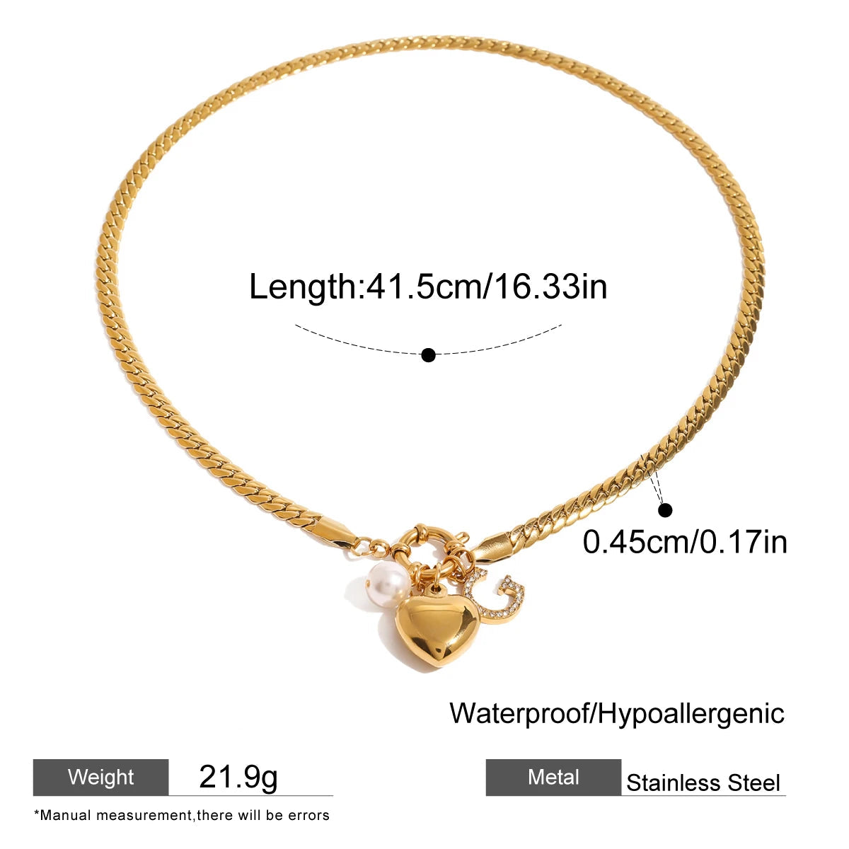 ステンレス304 低ニッケル 水に濡れても錆びにくい 18Kゴールドメッキ ネックレス ハート G 【YJ03255】