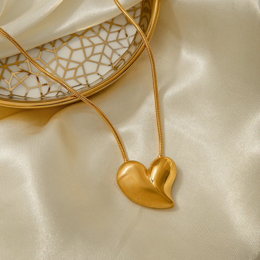 ステンレス304 低ニッケル 水に濡れても錆びにくい 18Kゴールドメッキ ネックレス チャーム ハート 【YJ03378】