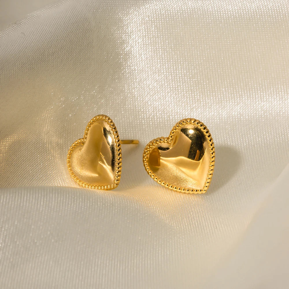 ステンレス304 低ニッケル 水に濡れても錆びにくい 18Kゴールドメッキ ピアス ハート 【YJ03422】