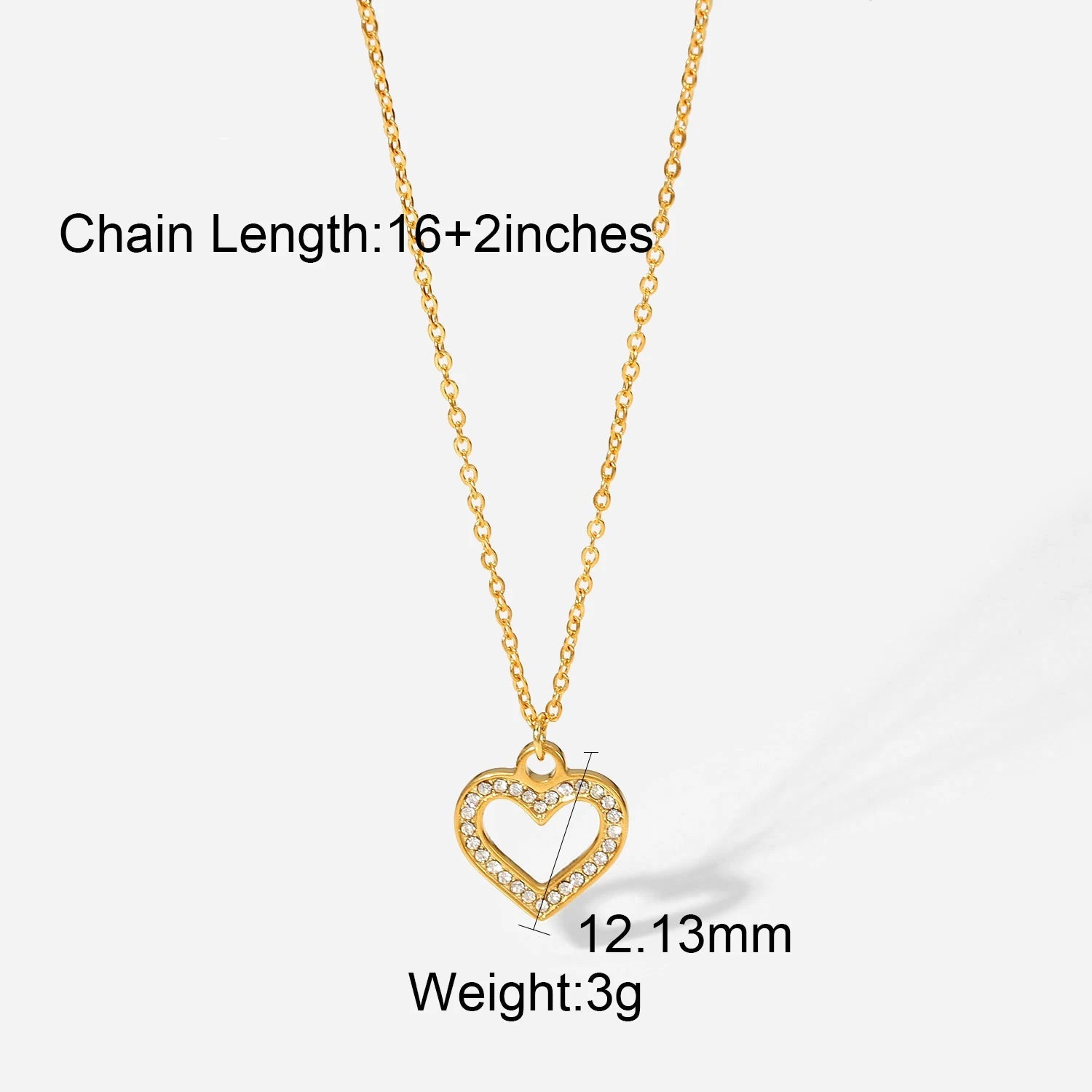 ステンレス304 低ニッケル 水に濡れても錆びにくい 18Kゴールドメッキ ネックレス ハート ジルコニア 【YJ03472】