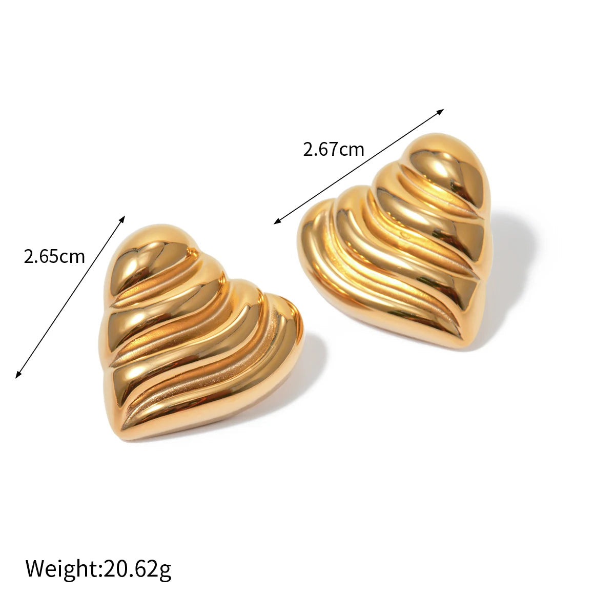 ステンレス304 低ニッケル 水に濡れても錆びにくい 18Kゴールドメッキ ピアス チャンキー ハート 【YJ03561】