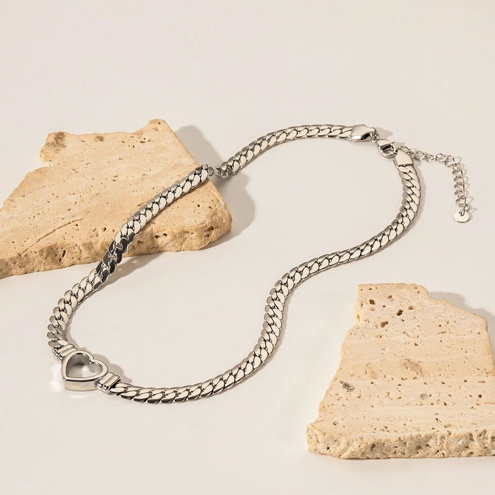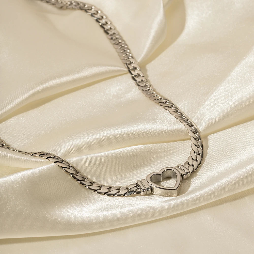 ステンレス304 低ニッケル 水に濡れても錆びにくい 18Kゴールドメッキ ネックレス キューバンチェーン ハート 【YJ03841】