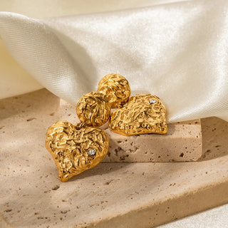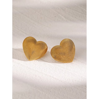 ステンレス304 低ニッケル 水に濡れても錆びにくい 18Kゴールドメッキ ピアス チャンキー ハート 【YJ02271】