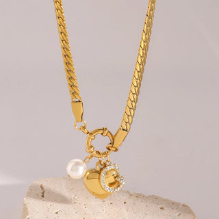 ステンレス304 低ニッケル 水に濡れても錆びにくい 18Kゴールドメッキ ネックレス ハート パール 【YJ02043】