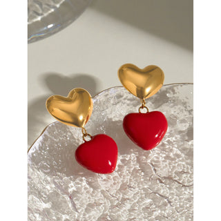 ステンレス304 低ニッケル 水に濡れても錆びにくい 18Kゴールドメッキ ピアス ハート エナメル【YJ02082】