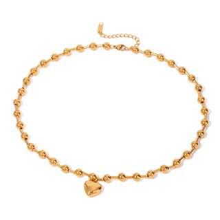 ステンレス304 低ニッケル 水に濡れても錆びにくい 18Kゴールドメッキ ネックレス チェーン ハート ビーズ 【YJ02158】