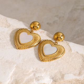 ステンレス304 低ニッケル 水に濡れても錆びにくい 18Kゴールドメッキ ピアス シェル ハート 【YJ02202】
