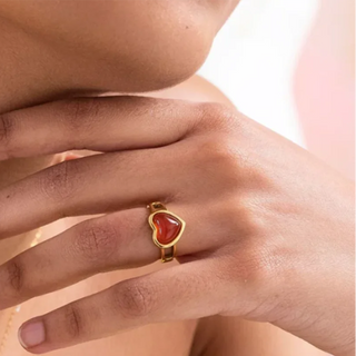 ステンレス304 低ニッケル 水に濡れても錆びにくい 18Kゴールドメッキ リング ハート【YJ02325】