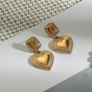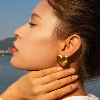 ステンレス304 低ニッケル 水に濡れても錆びにくい 18Kゴールドメッキ ピアス チャンキー ハート 【YJ03561】