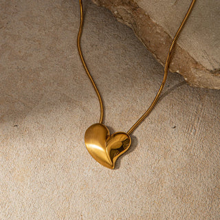 ステンレス304 低ニッケル 水に濡れても錆びにくい 18Kゴールドメッキ ネックレス ハート 【YJ01643】