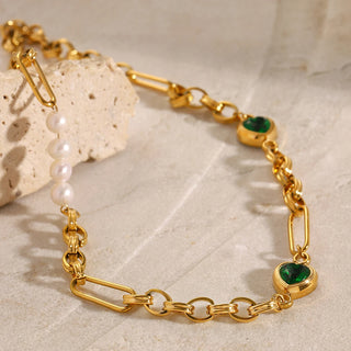 ステンレス304 低ニッケル 水に濡れても錆びにくい 18Kゴールドメッキ ブレスレット ハート ジルコニア 【YJ01806】