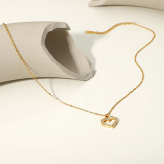 ステンレス304 低ニッケル 水に濡れても錆びにくい 18Kゴールドメッキ ネックレス ハート ジルコニア 【YJ03408】