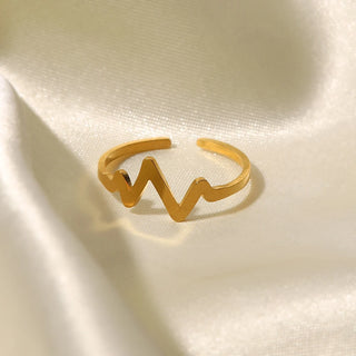 ステンレス304 低ニッケル 水に濡れても錆びにくい 18Kゴールドメッキ リング ハートビート【YJ03621】