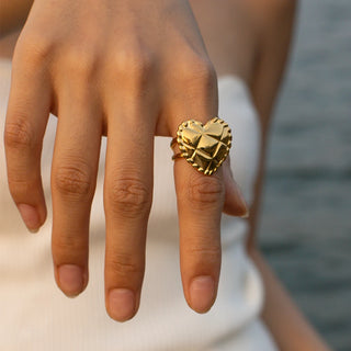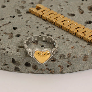 ステンレス304 低ニッケル 水に濡れても錆びにくい 18Kゴールドメッキ リング チャンキー ハート 【YJ03507】