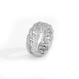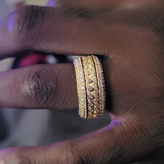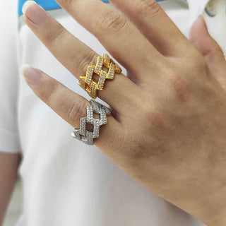 高品質真鍮 A3ランクジルコニア 18Kゴールドメッキ キューバンリンク リング アイスドアウト ヒップホップ【NJ00036】