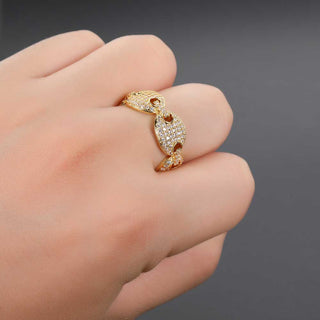 高品質真鍮 A3ランクジルコニア 18Kゴールドメッキ チェーン リング アイスドアウト ヒップホップ【NJ00034】