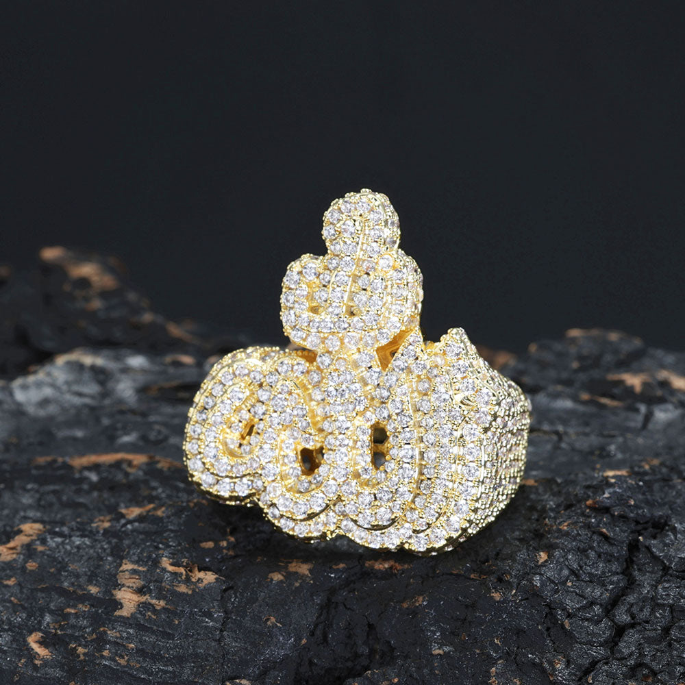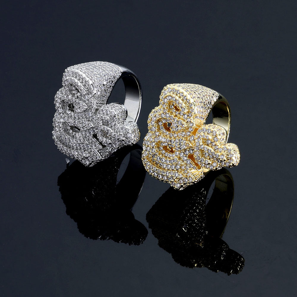 高品質真鍮 A3ランクジルコニア 18Kゴールドメッキ リング アイスドアウト ヒップホップ【NJ00013】