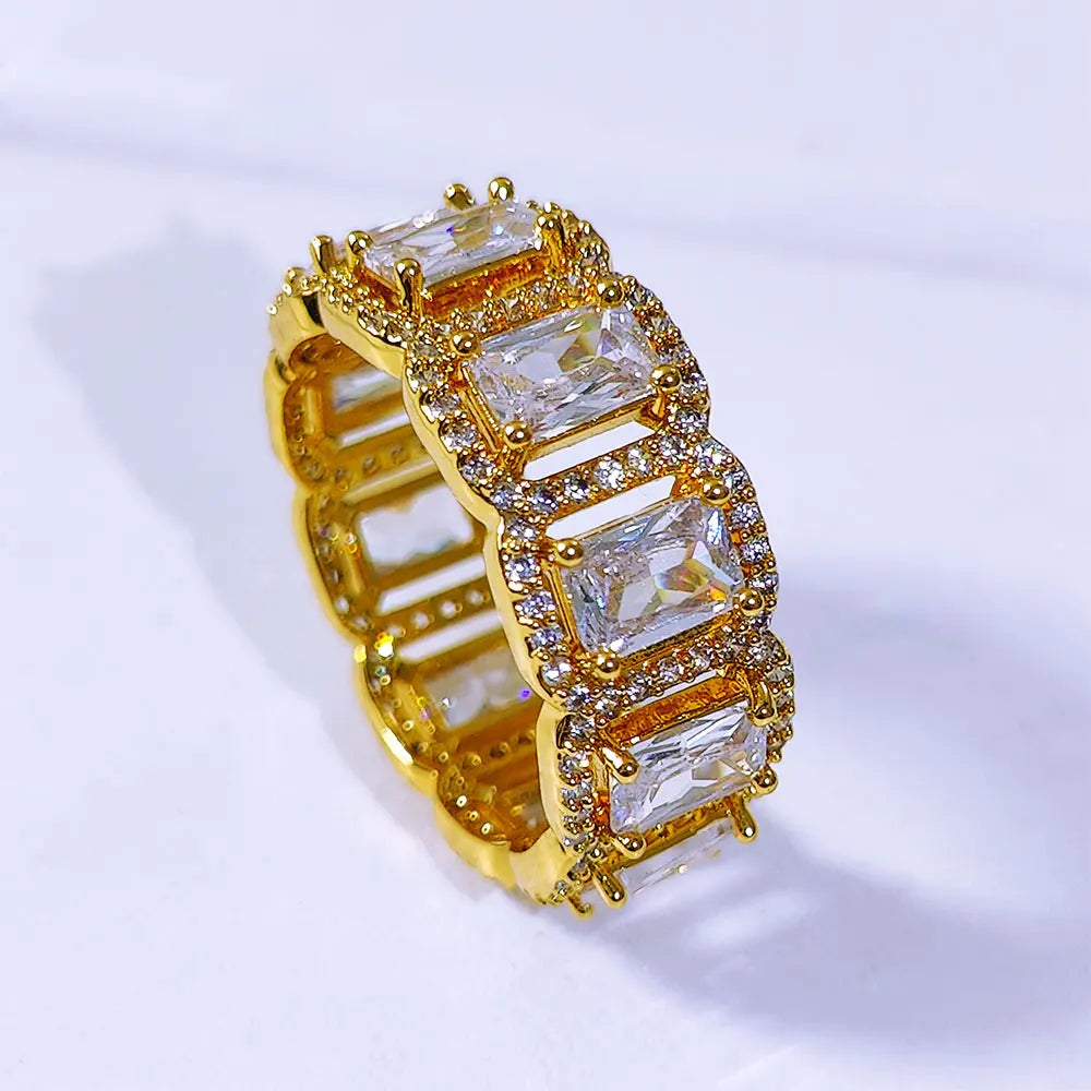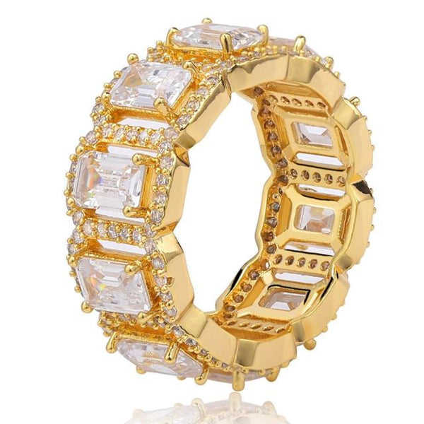 高品質真鍮 A3ランクジルコニア 18Kゴールドメッキ リング アイスドアウト ヒップホップ【NJ00028】