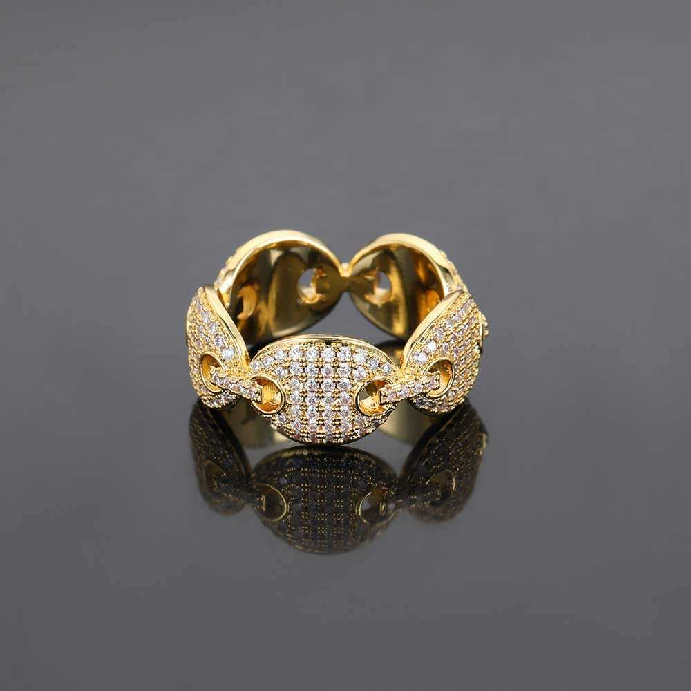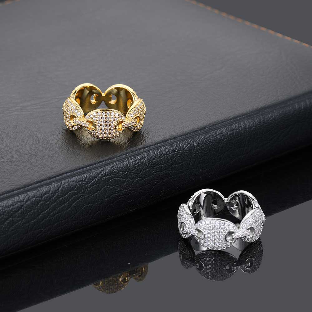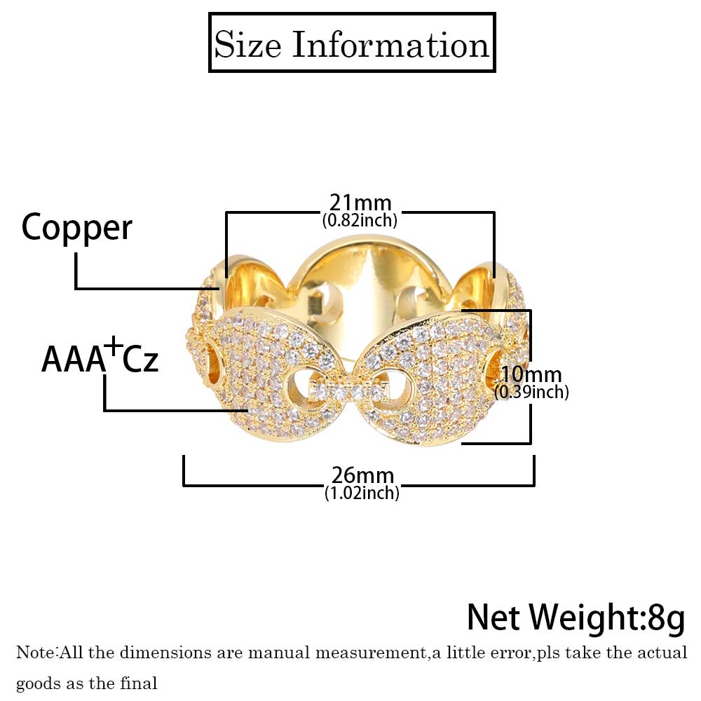 高品質真鍮 A3ランクジルコニア 18Kゴールドメッキ リング アイスドアウト ヒップホップ【NJ00035】