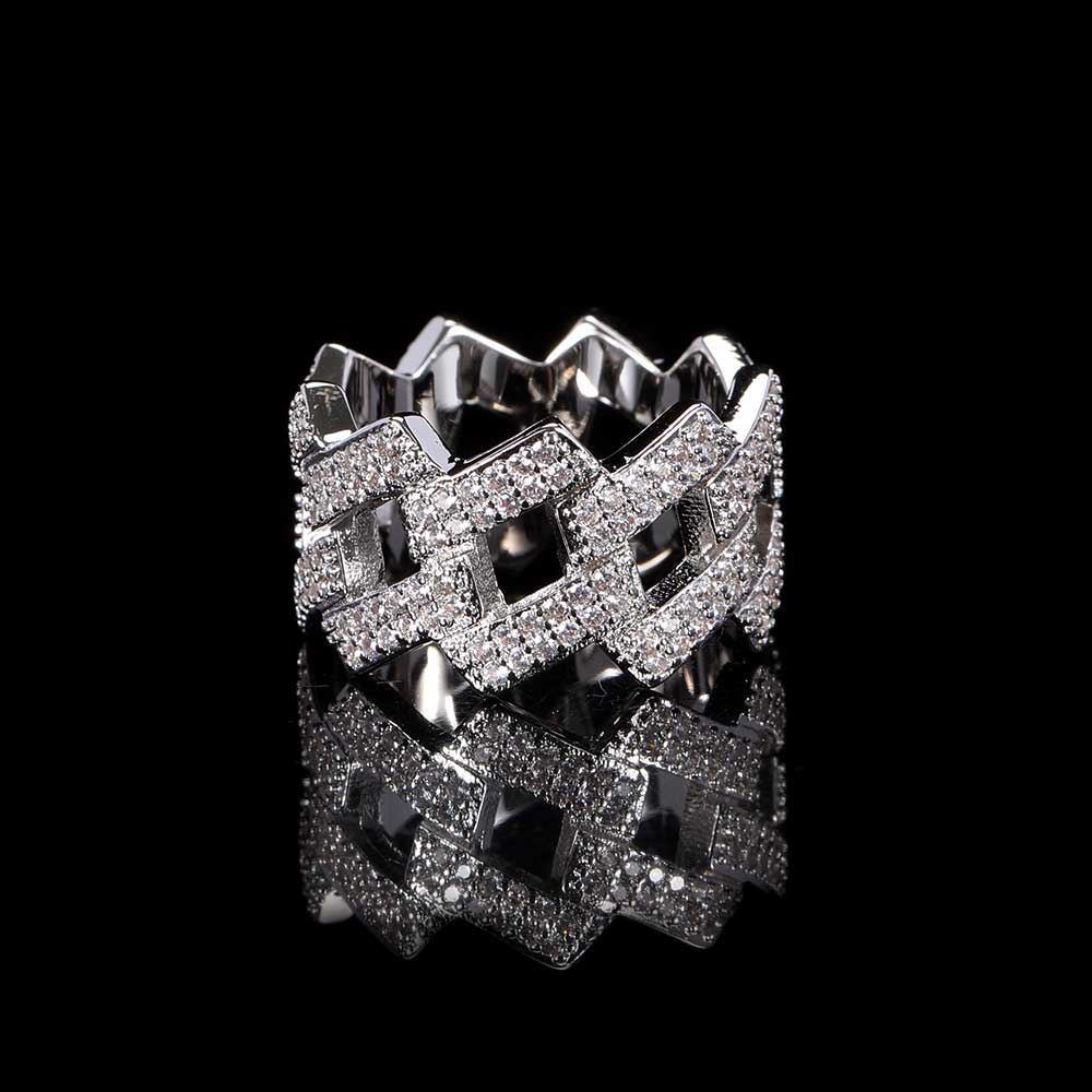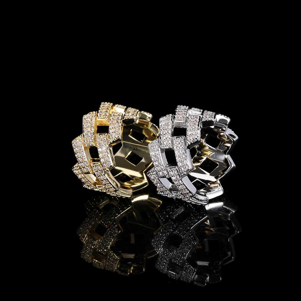 高品質真鍮 A3ランクジルコニア 18Kゴールドメッキ キューバンリンク リング アイスドアウト ヒップホップ【NJ00036】