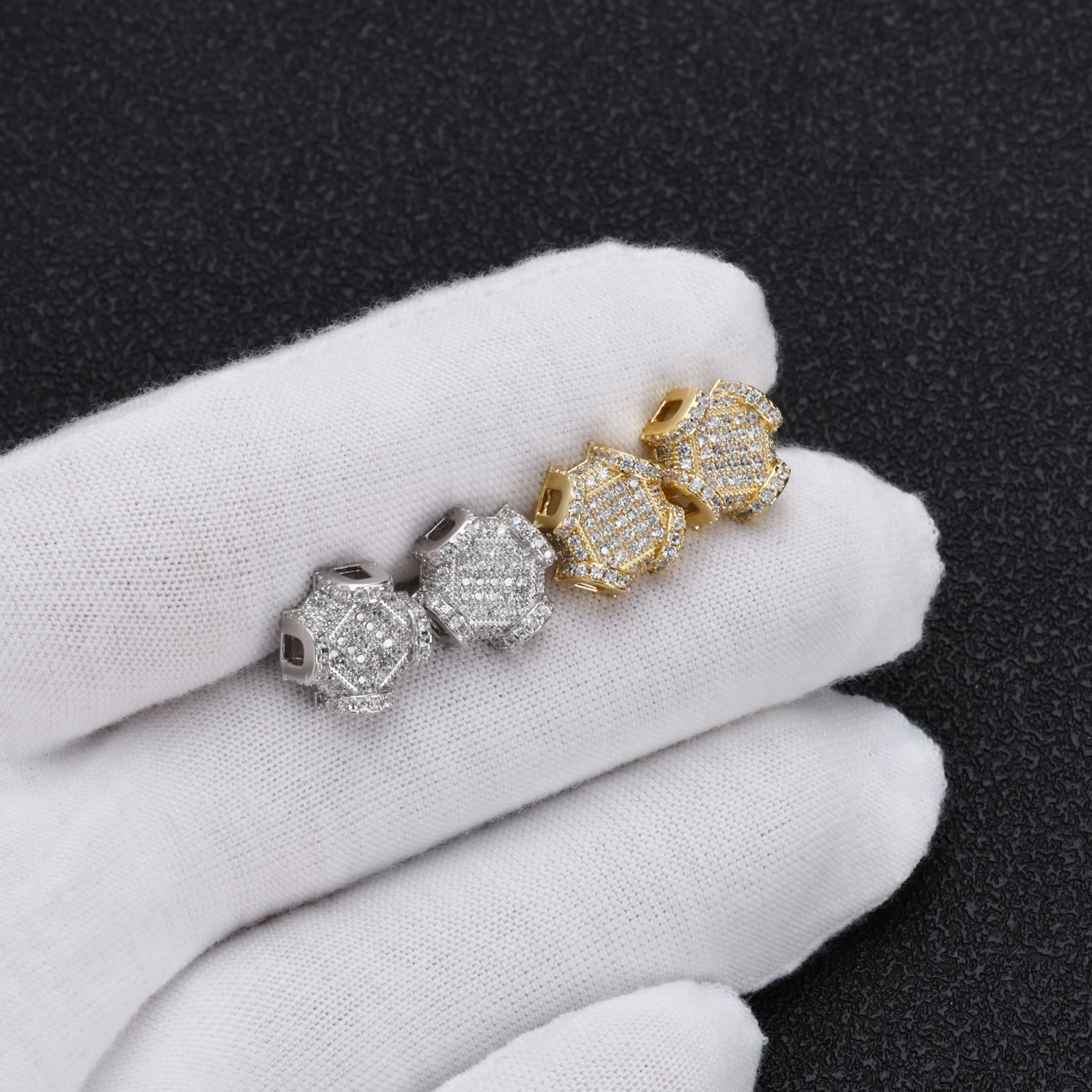 高品質真鍮 A3ランクジルコニア 18Kゴールドメッキ ピアス アイスドアウト ヒップホップ【NJ00059】
