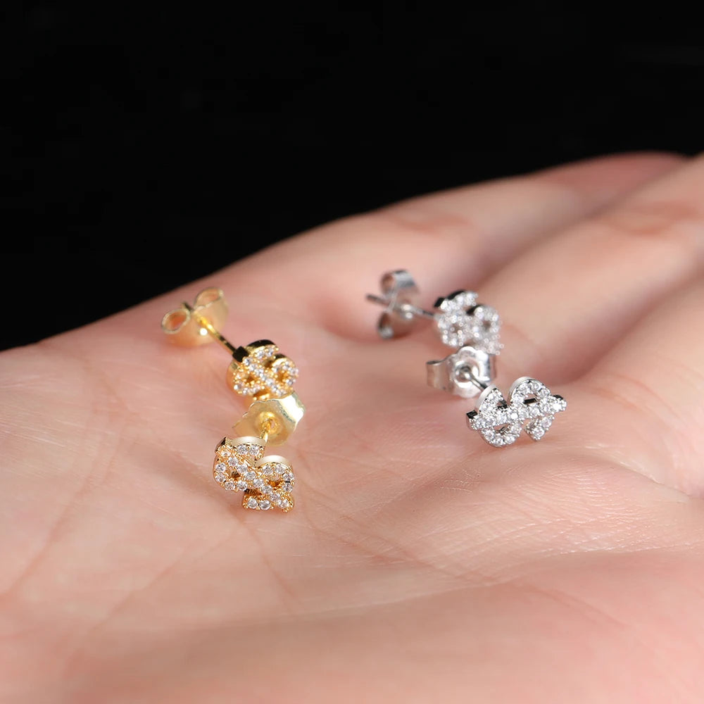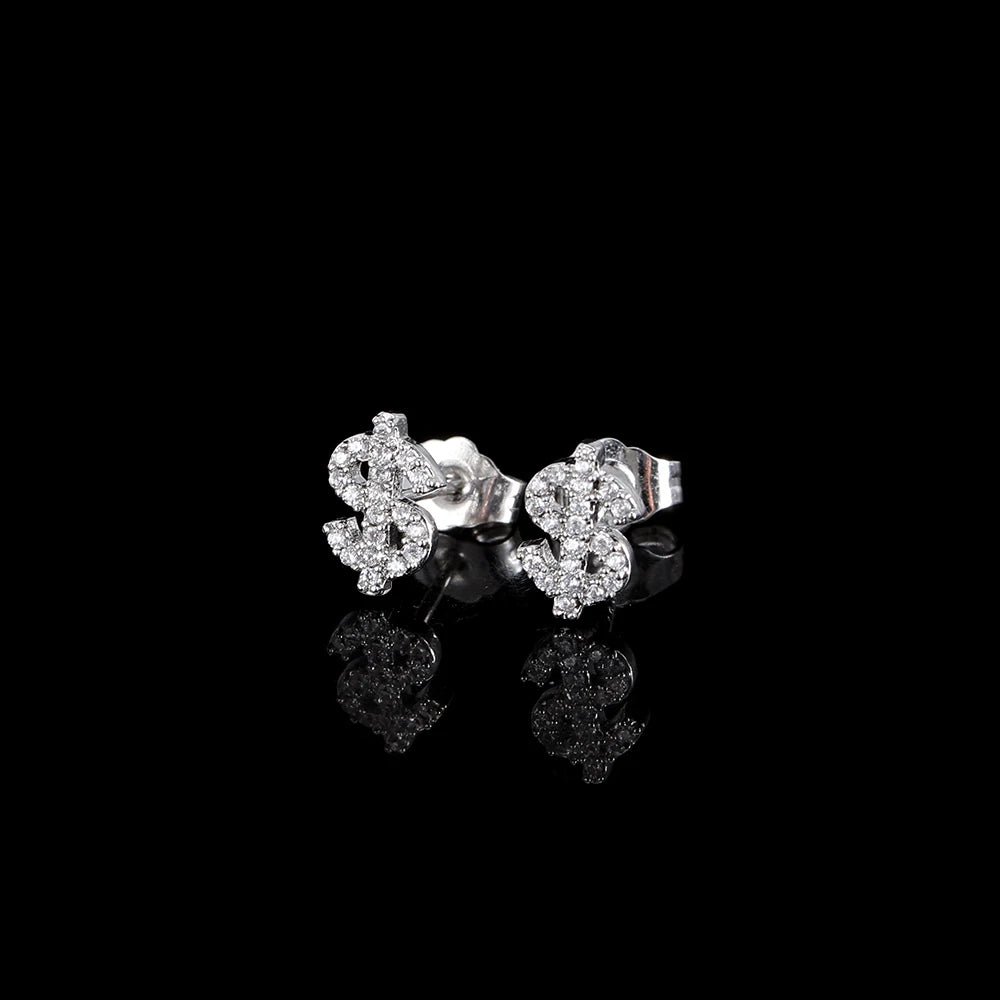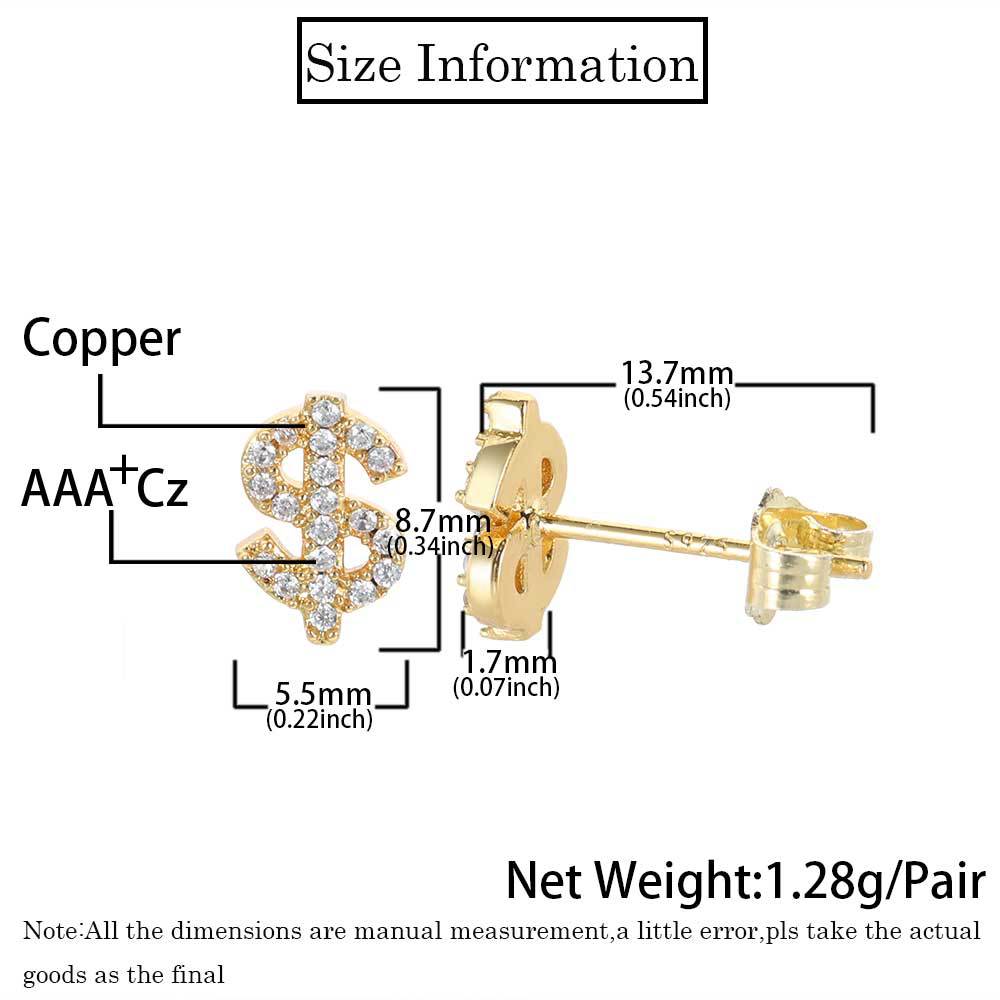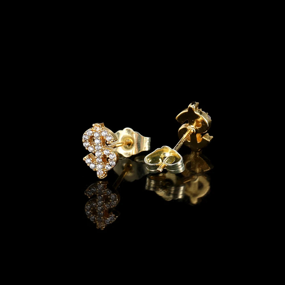 高品質真鍮 A3ランクジルコニア 18Kゴールドメッキ ピアス ドルマーク アイスドアウト ヒップホップ【NJ00063】