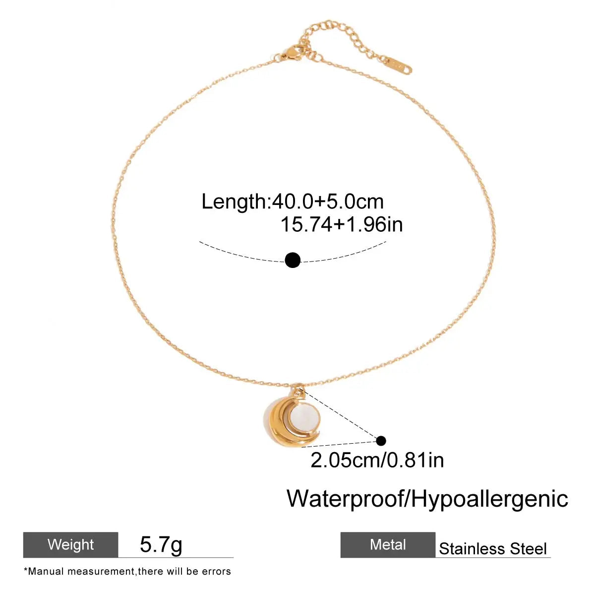 ステンレス304 ニッケルフリー 水に濡れても錆びにくい 18Kゴールドメッキ ネックレス 月 【YJ00333】
