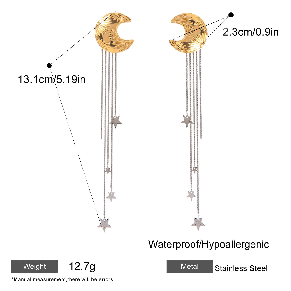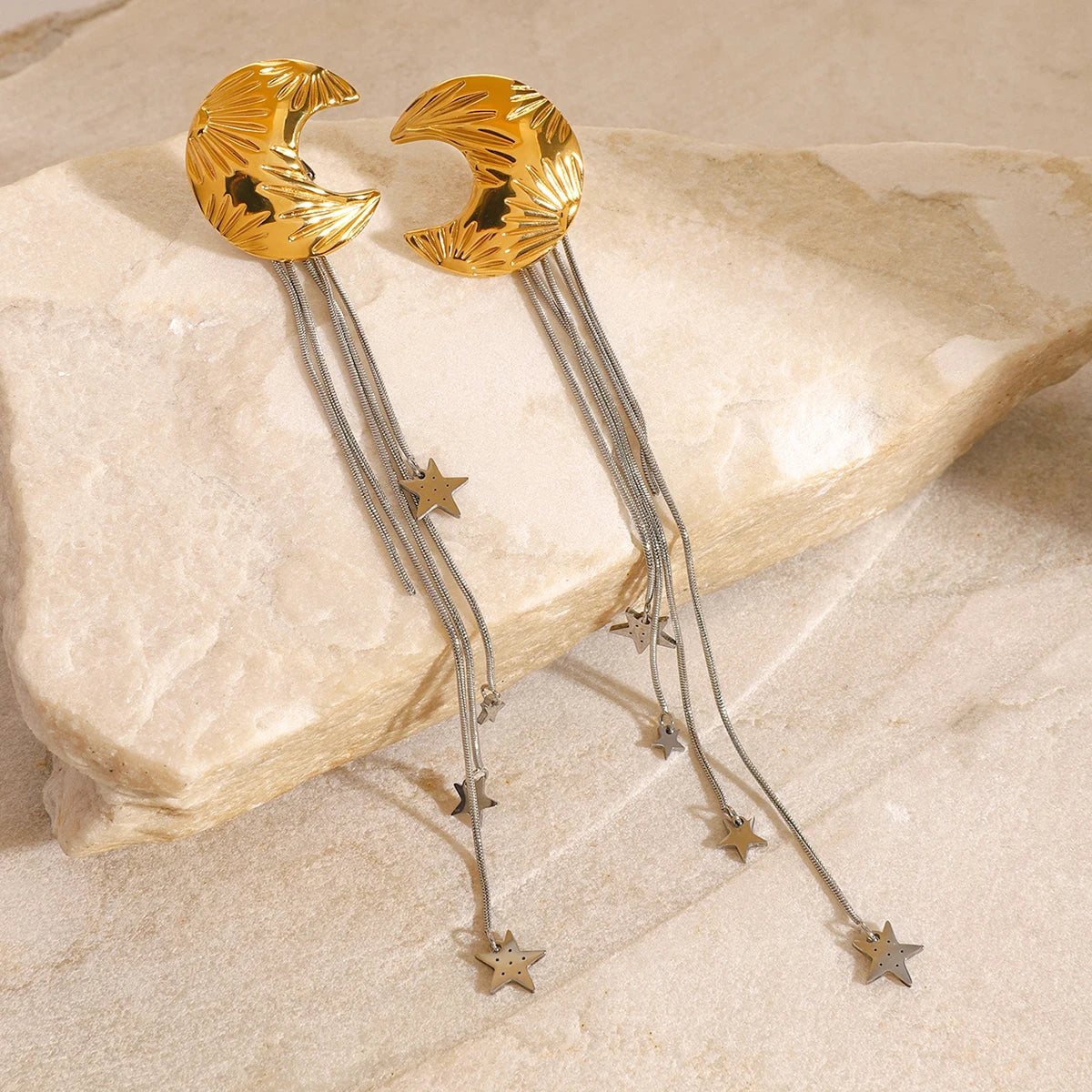 ステンレス304 低ニッケル 水に濡れても錆びにくい 18Kゴールドメッキ ピアス タッセル 月 【YJ01429】
