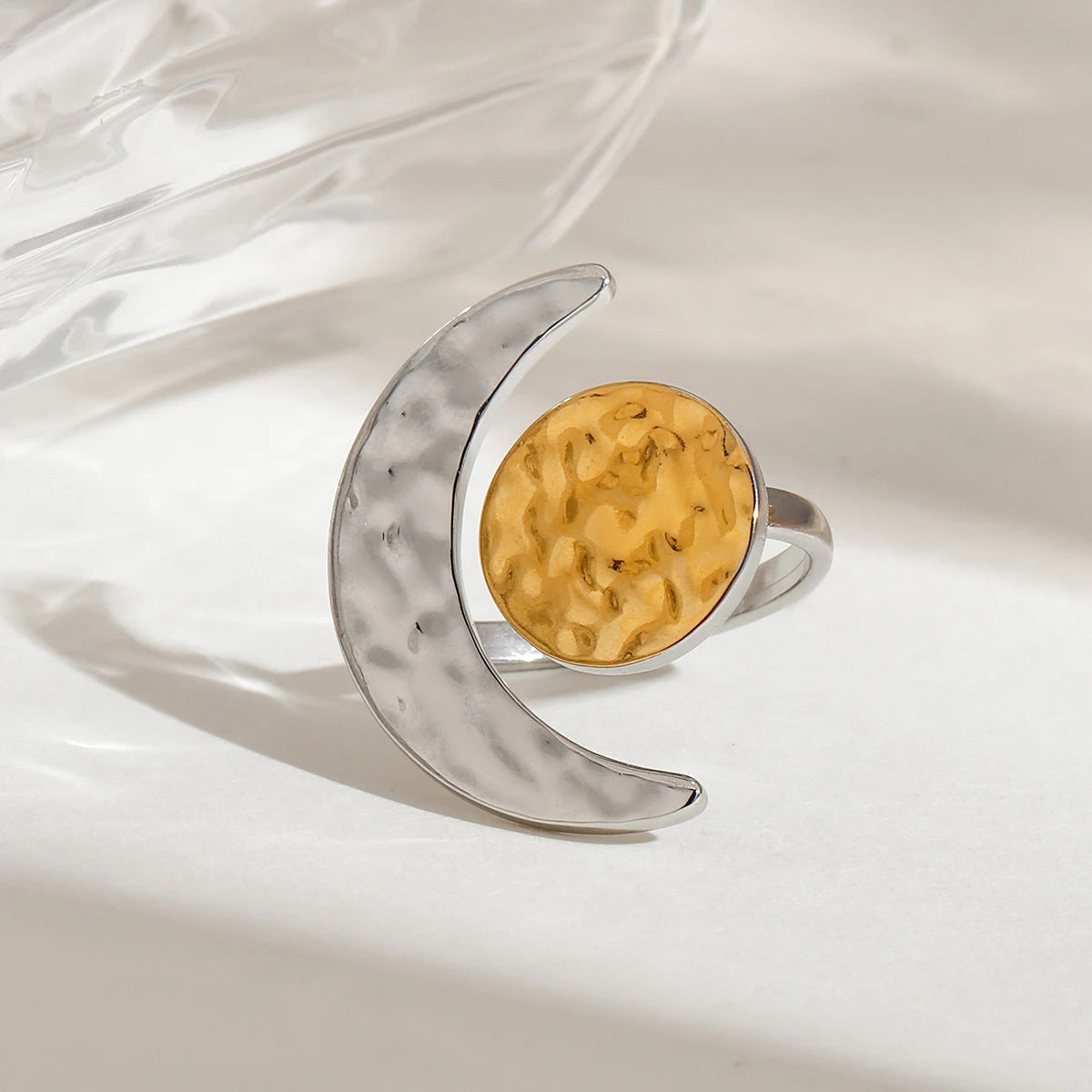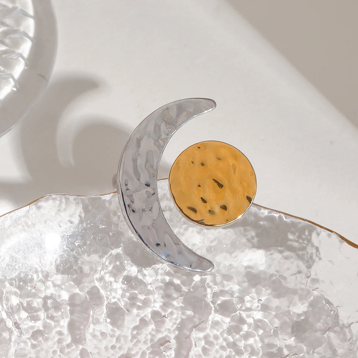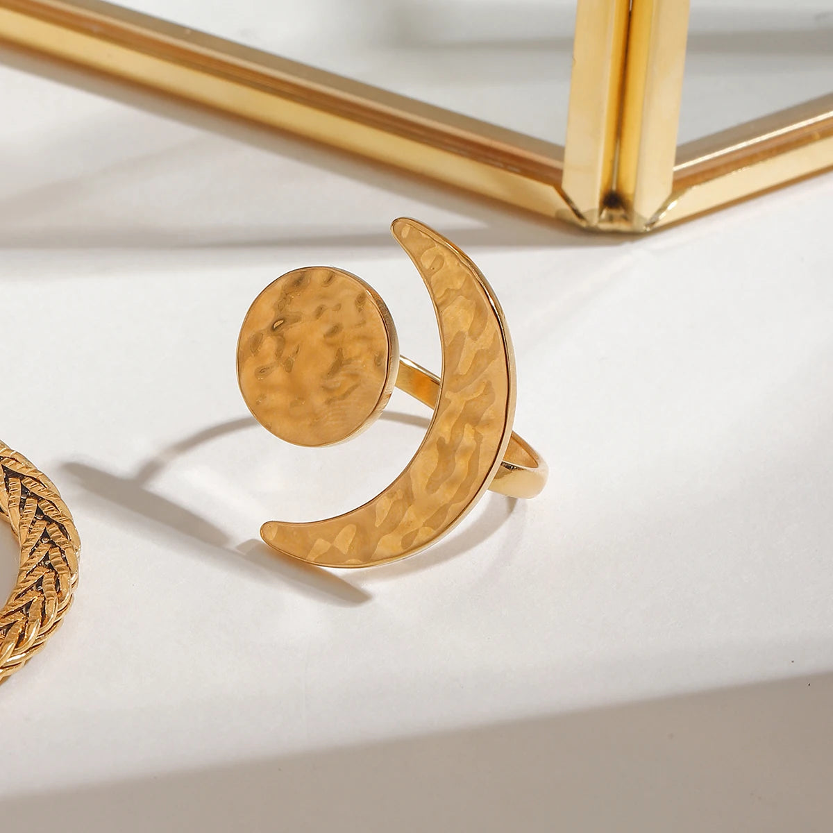 ステンレス304 低ニッケル 水に濡れても錆びにくい 18Kゴールドメッキ リング 月 【YJ01528】