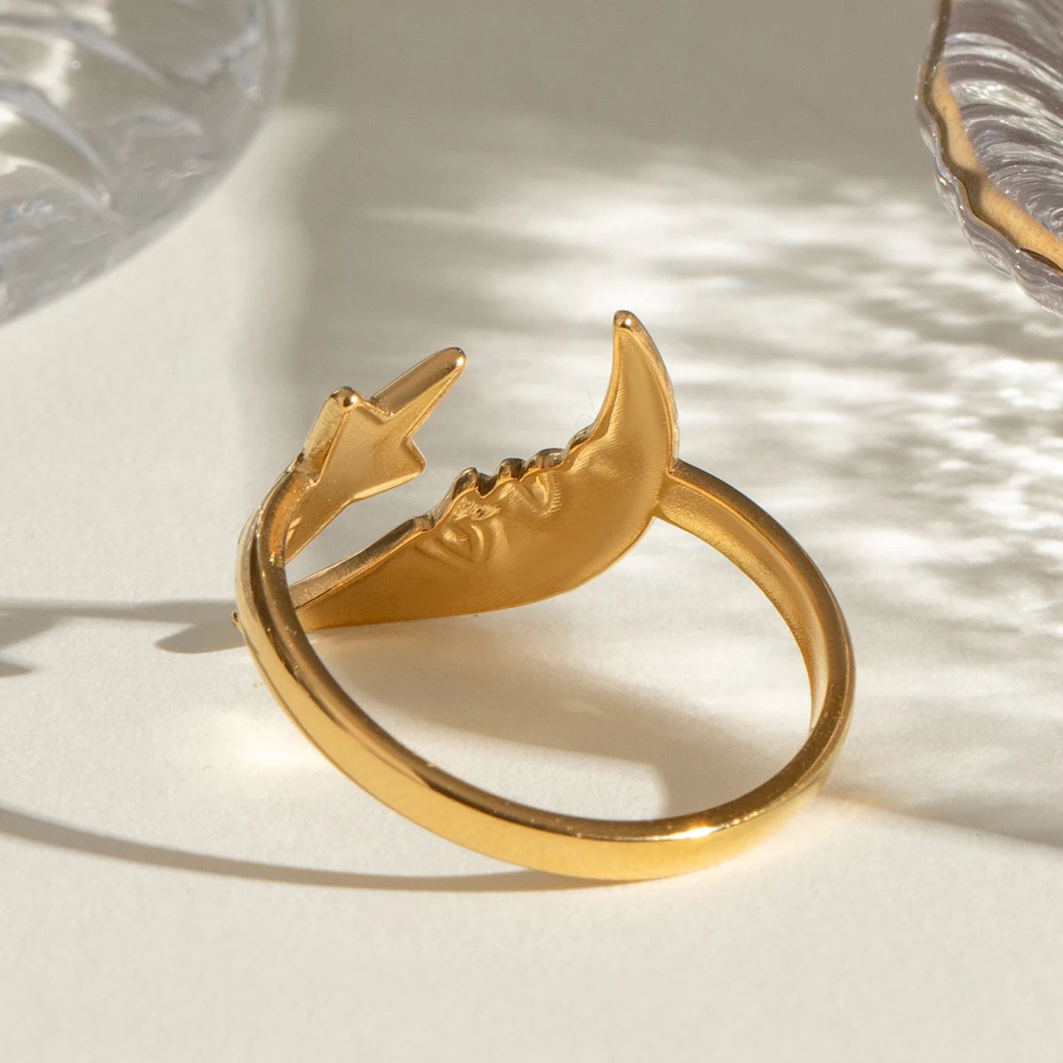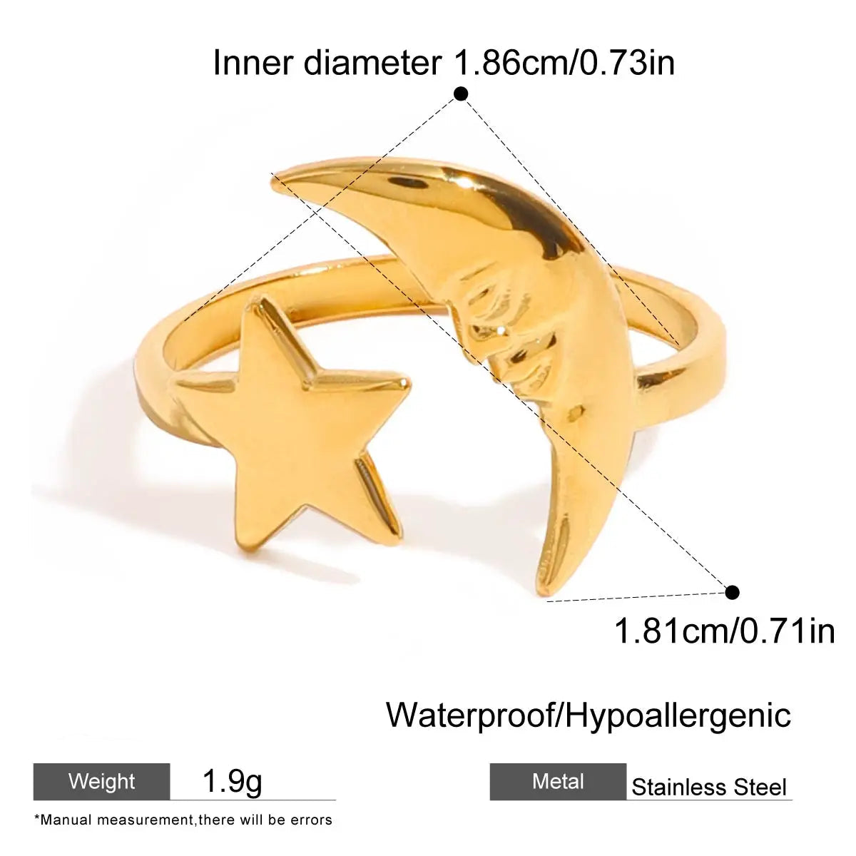 ステンレス304 低ニッケル 水に濡れても錆びにくい 18Kゴールドメッキ リング スター 星 月 【YJ01994】