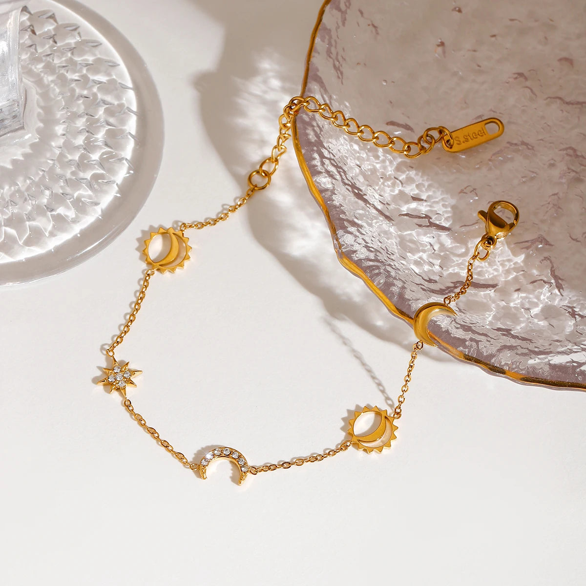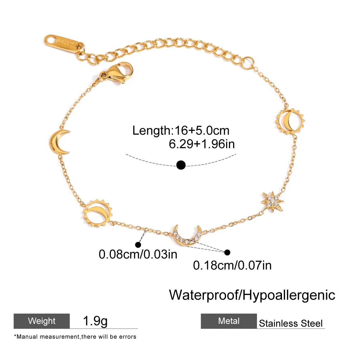ステンレス304 低ニッケル 水に濡れても錆びにくい 18Kゴールドメッキ ブレスレット 月 【YJ02036】