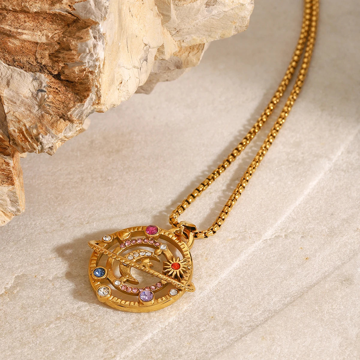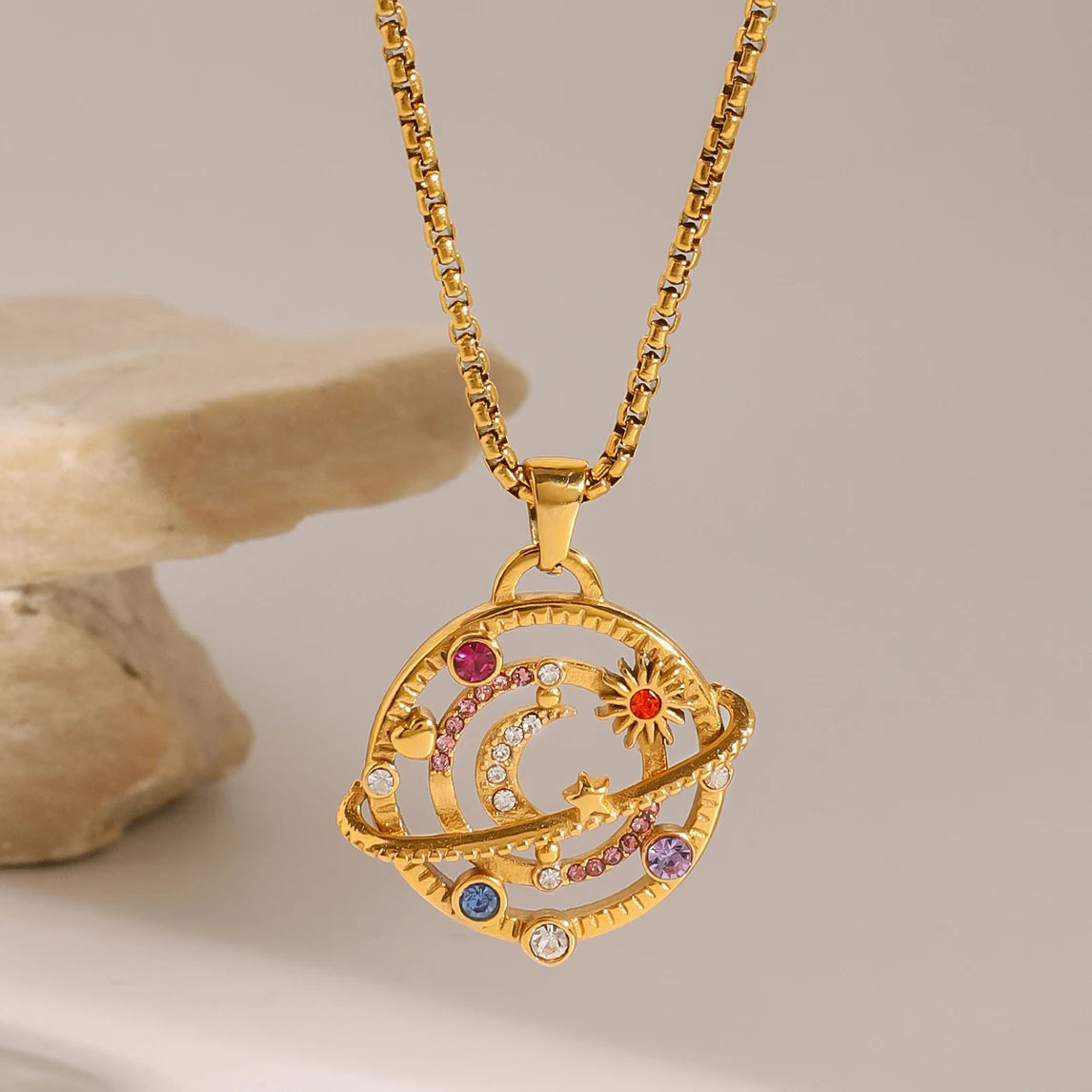 ステンレス304 低ニッケル 水に濡れても錆びにくい 18Kゴールドメッキ ネックレス チェーン 月 【YJ03126】