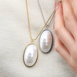 316Lサージカルステンレス ネックレス パール オーバル【NY01727】