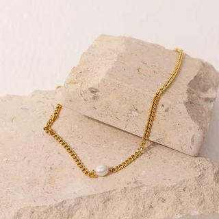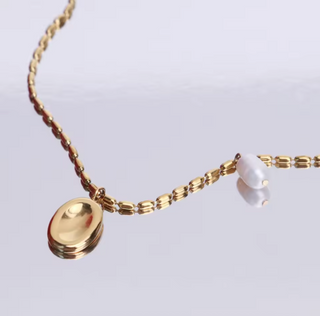 316Lサージカルステンレス 18Kゴールドメッキ ネックレス チェーン パール【NY01863】