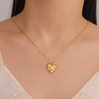 316Lサージカルステンレス 18Kゴールドメッキ ネックレス ハート パール【NY01681】