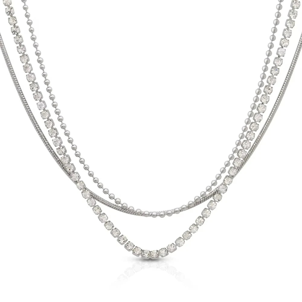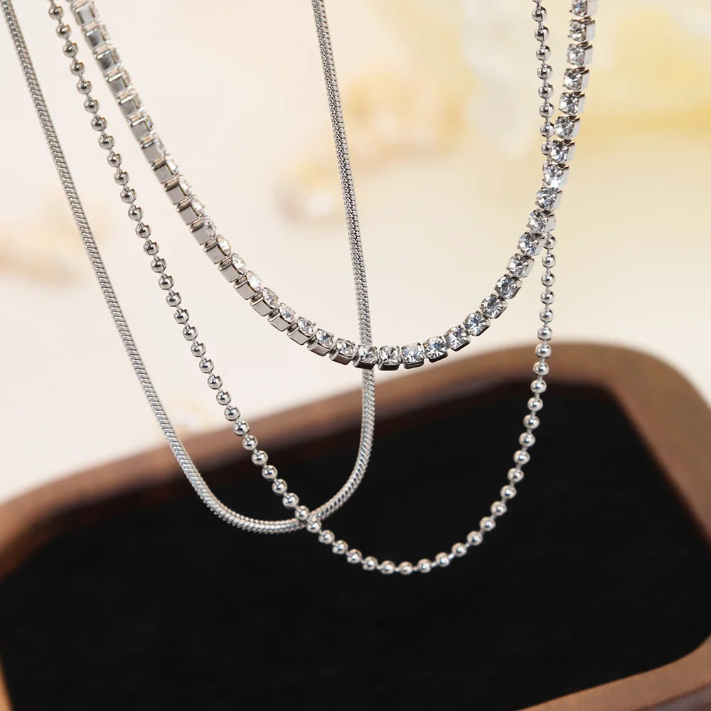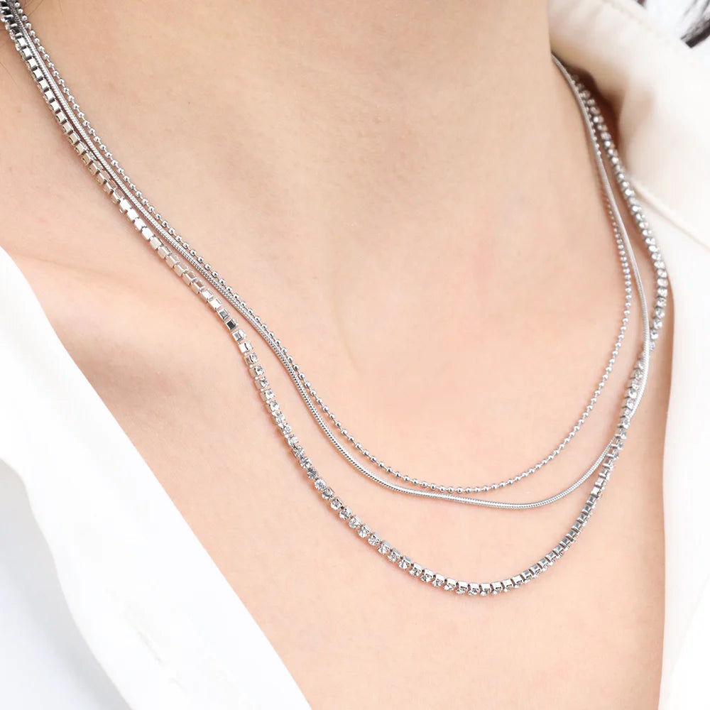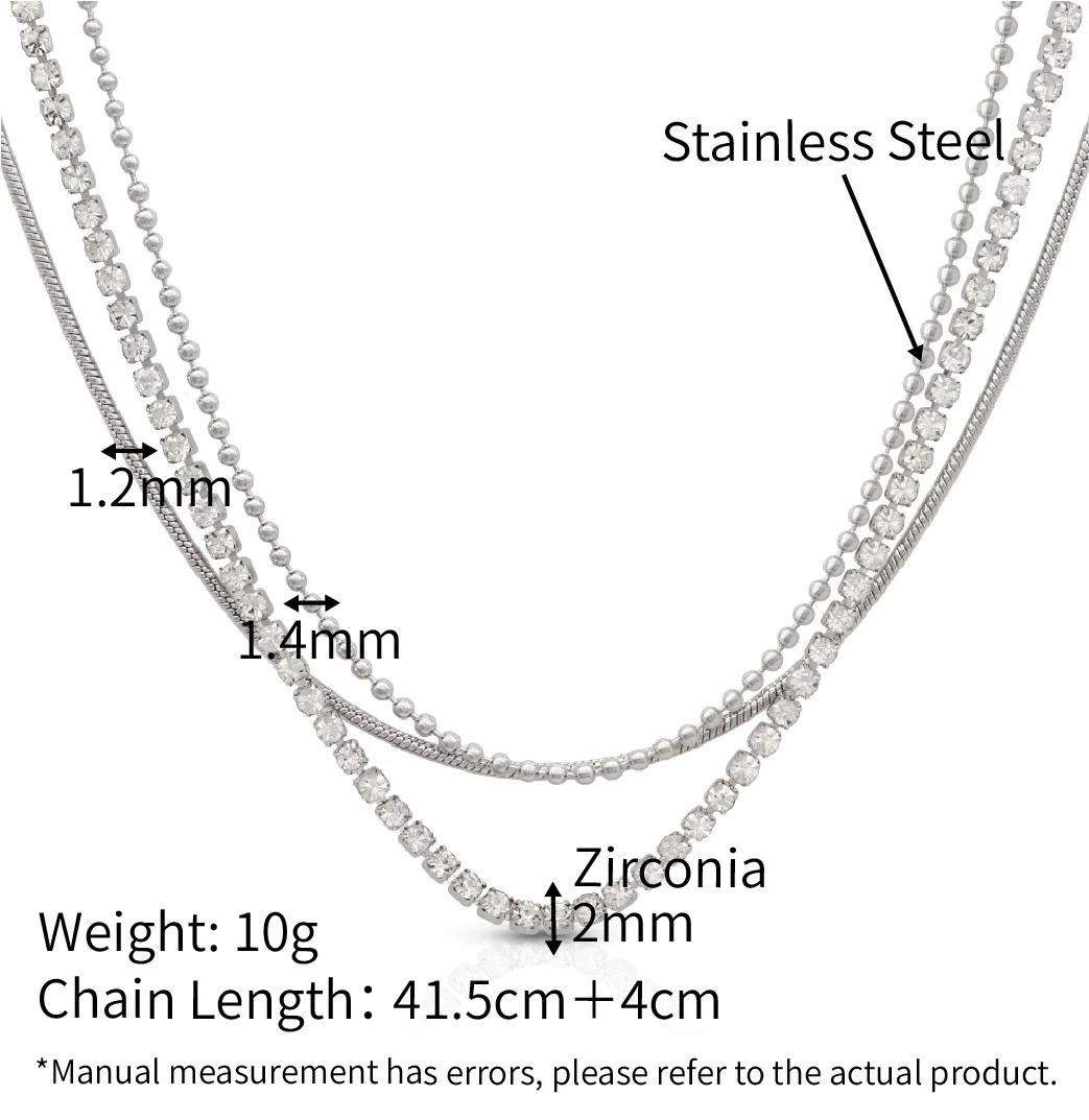 316Lサージカルステンレス ネックレス 3層 チェーン ジルコニア 【NY00836】