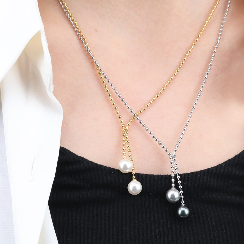 316Lサージカルステンレス ネックレス チェーン パール【NY00840】