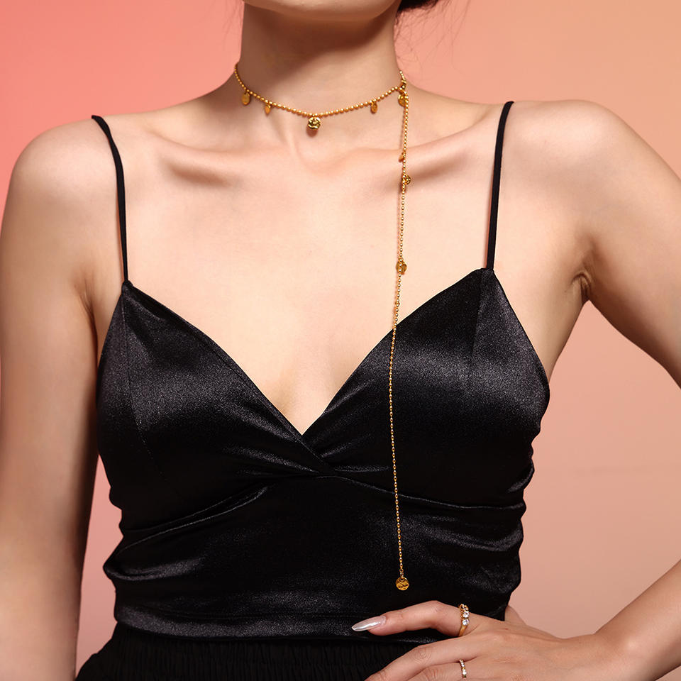 316Lサージカルステンレス 18Kゴールドメッキ ネックレス チャーム チェーン 【NY01087】