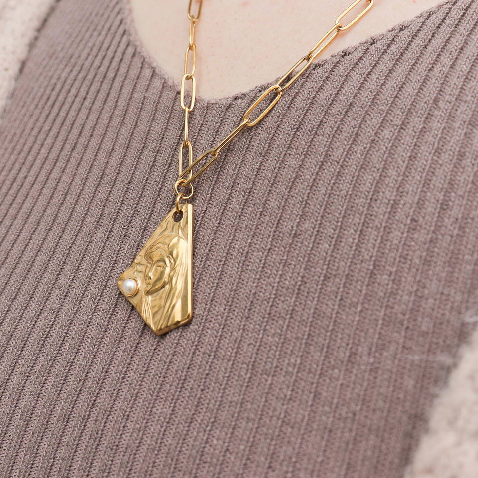 316Lサージカルステンレス ネックレス シェル オーバル 【NY00263】