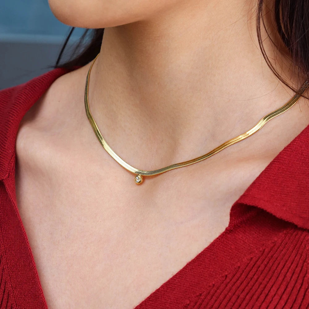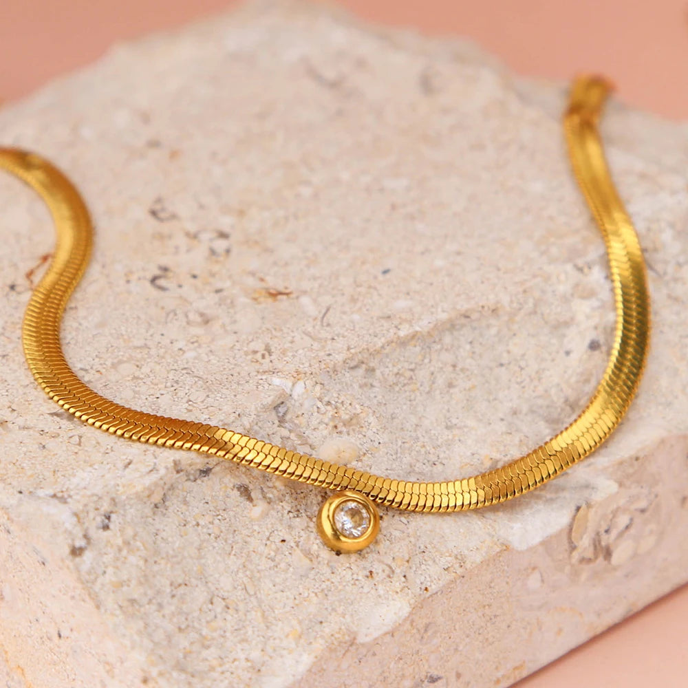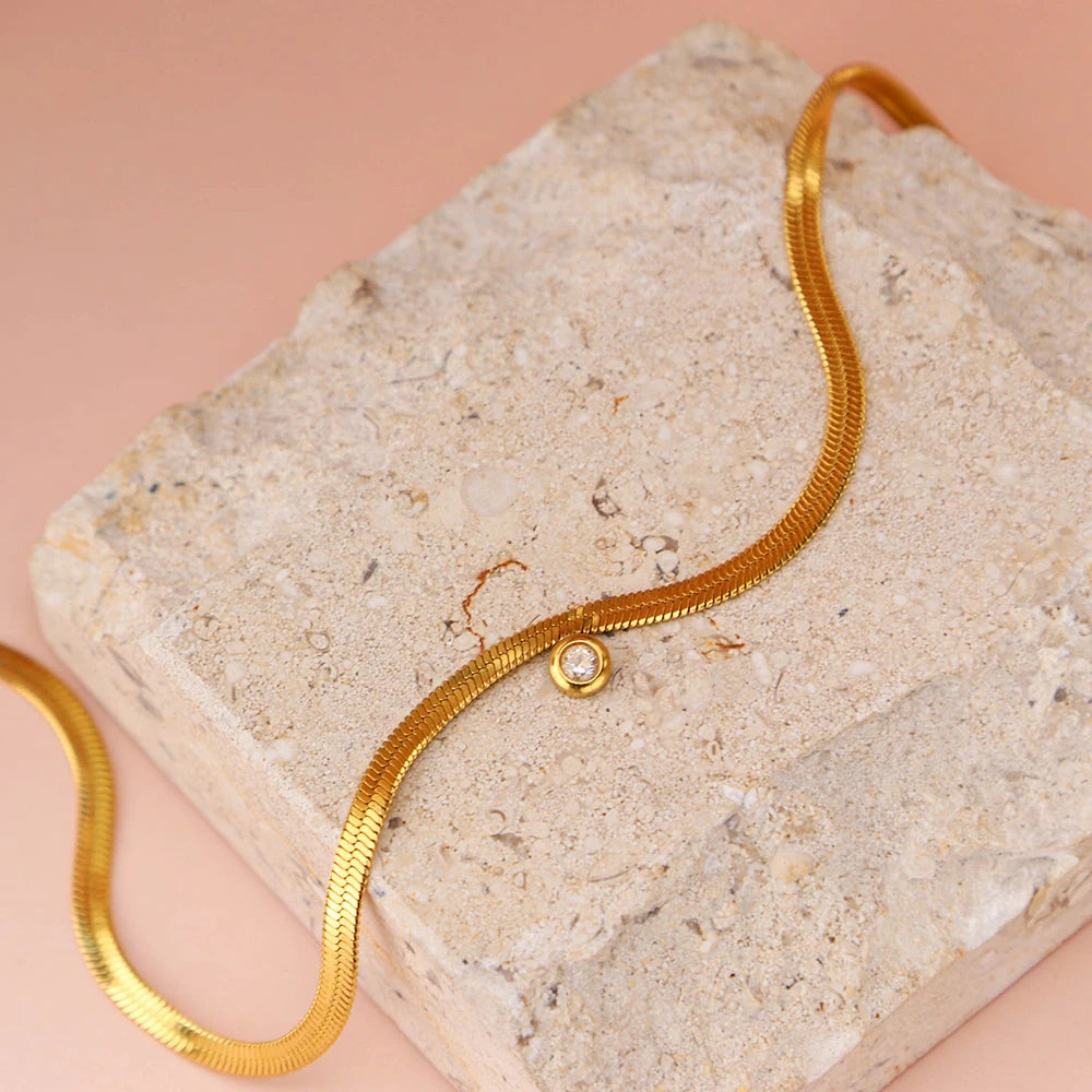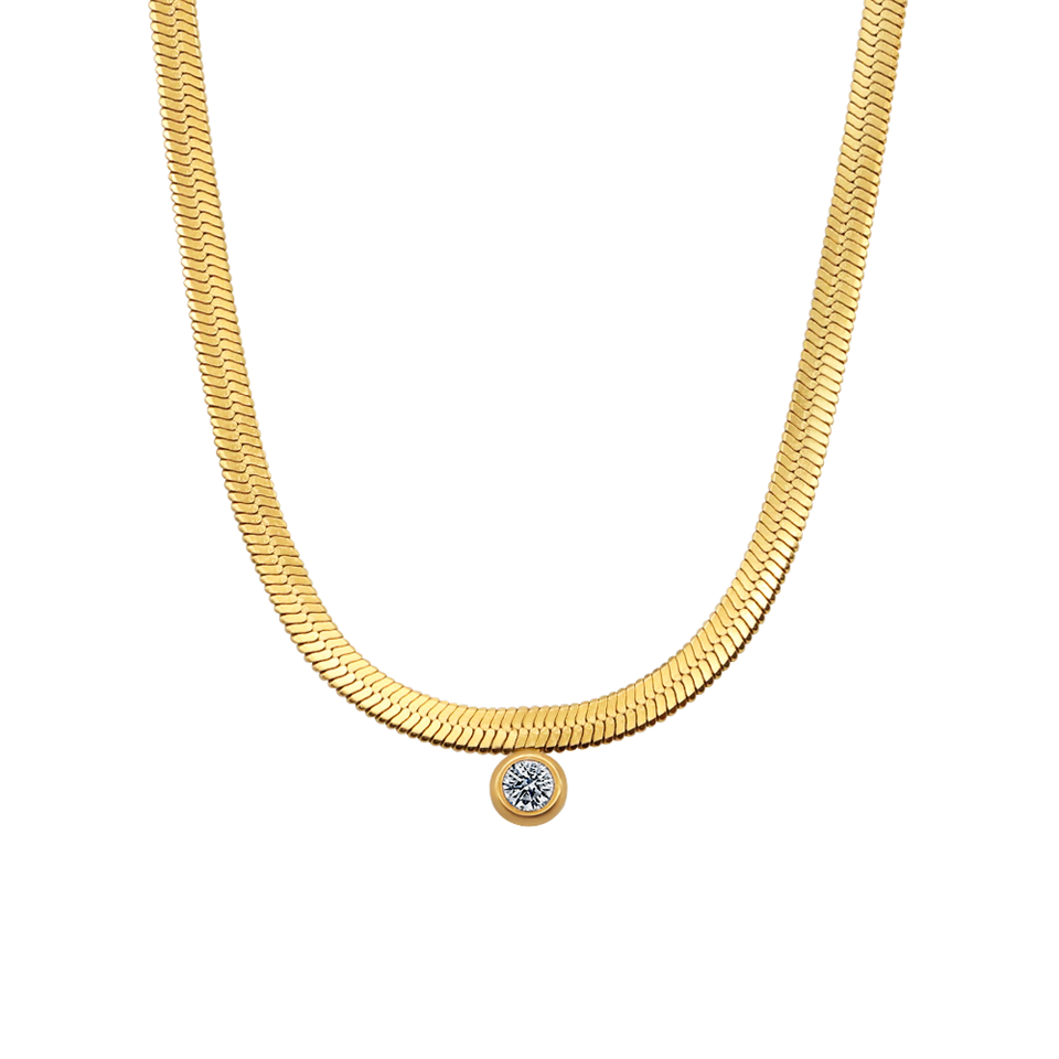 316Lサージカルステンレス 18Kゴールドメッキ ネックレス スネーク ジルコニア【NY01178】