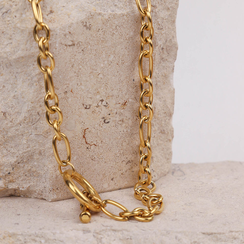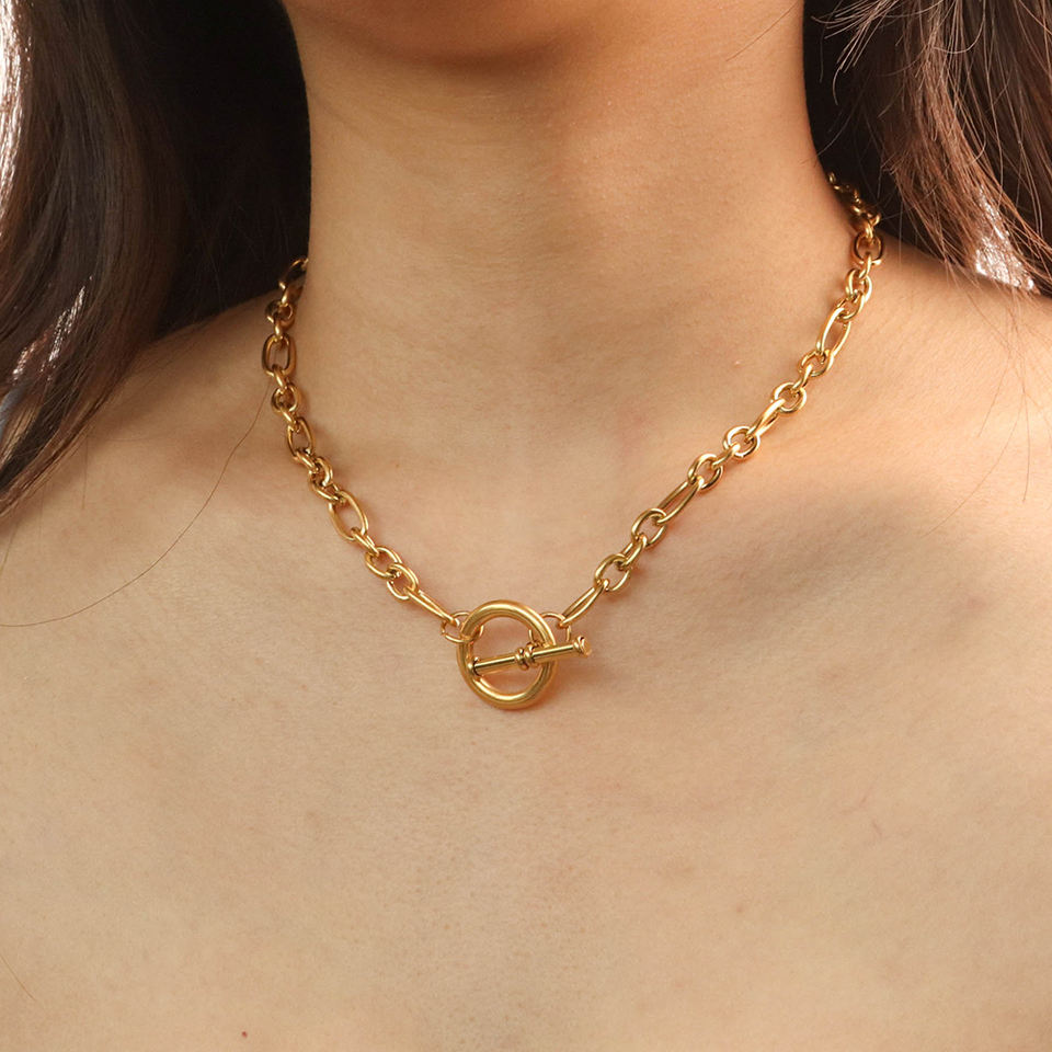 316Lサージカルステンレス 18Kゴールドメッキ ネックレス チェーン Tバー 【NY01205】