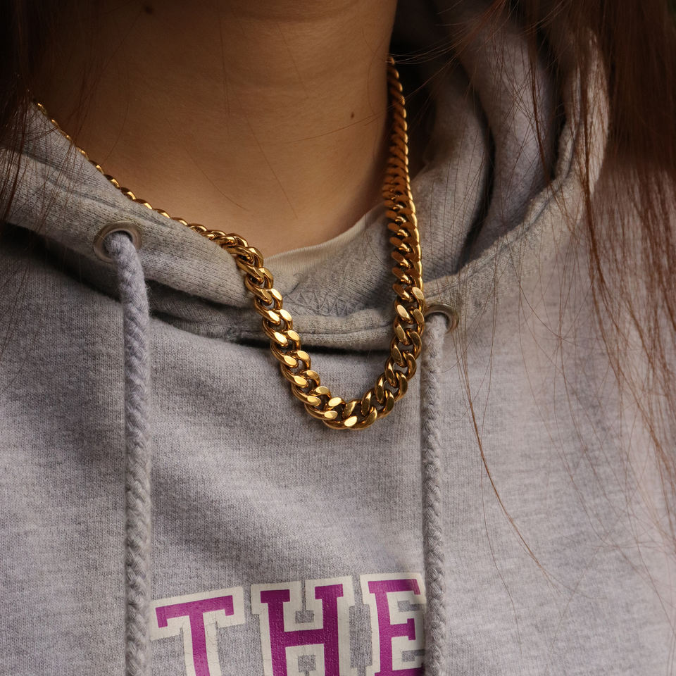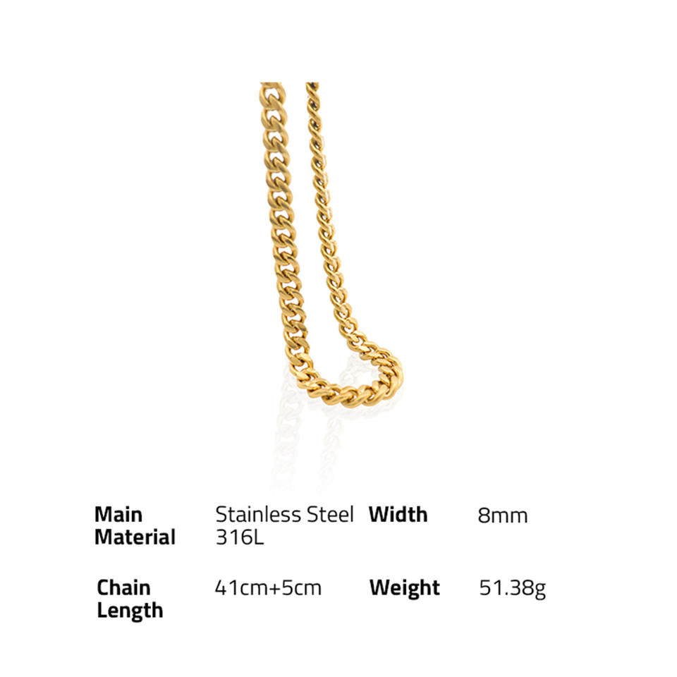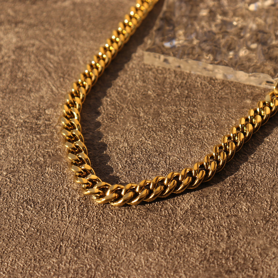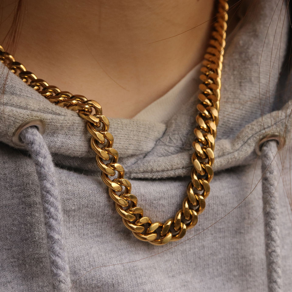 316Lサージカルステンレス 18Kゴールドメッキ ネックレス キューバンチェーン 【NY01209】
