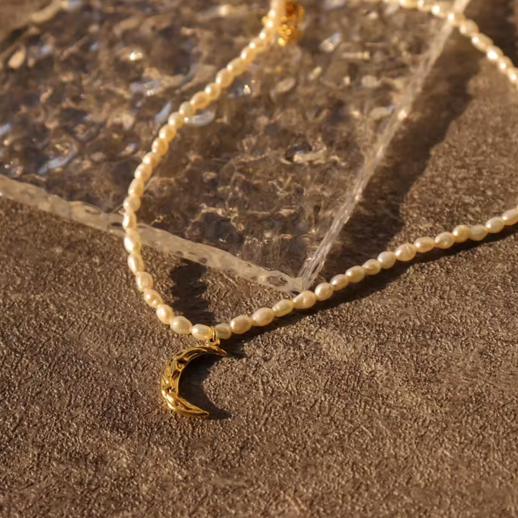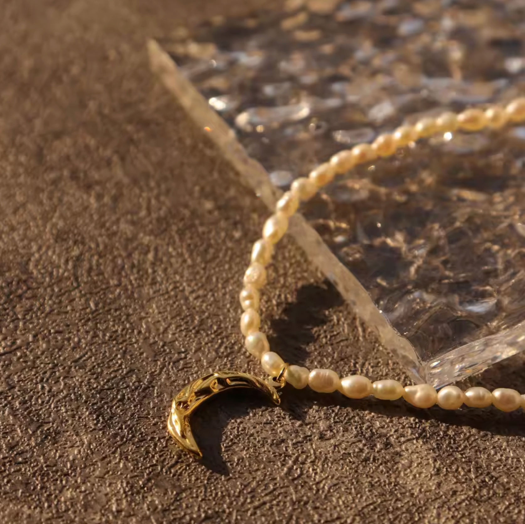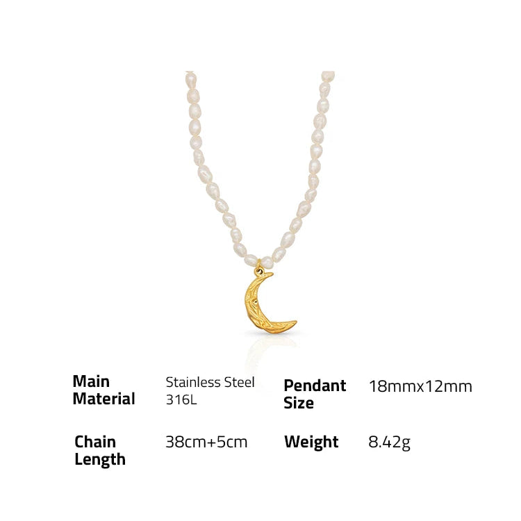 316Lサージカルステンレス ネックレス バロックパール 月 【NY01723】