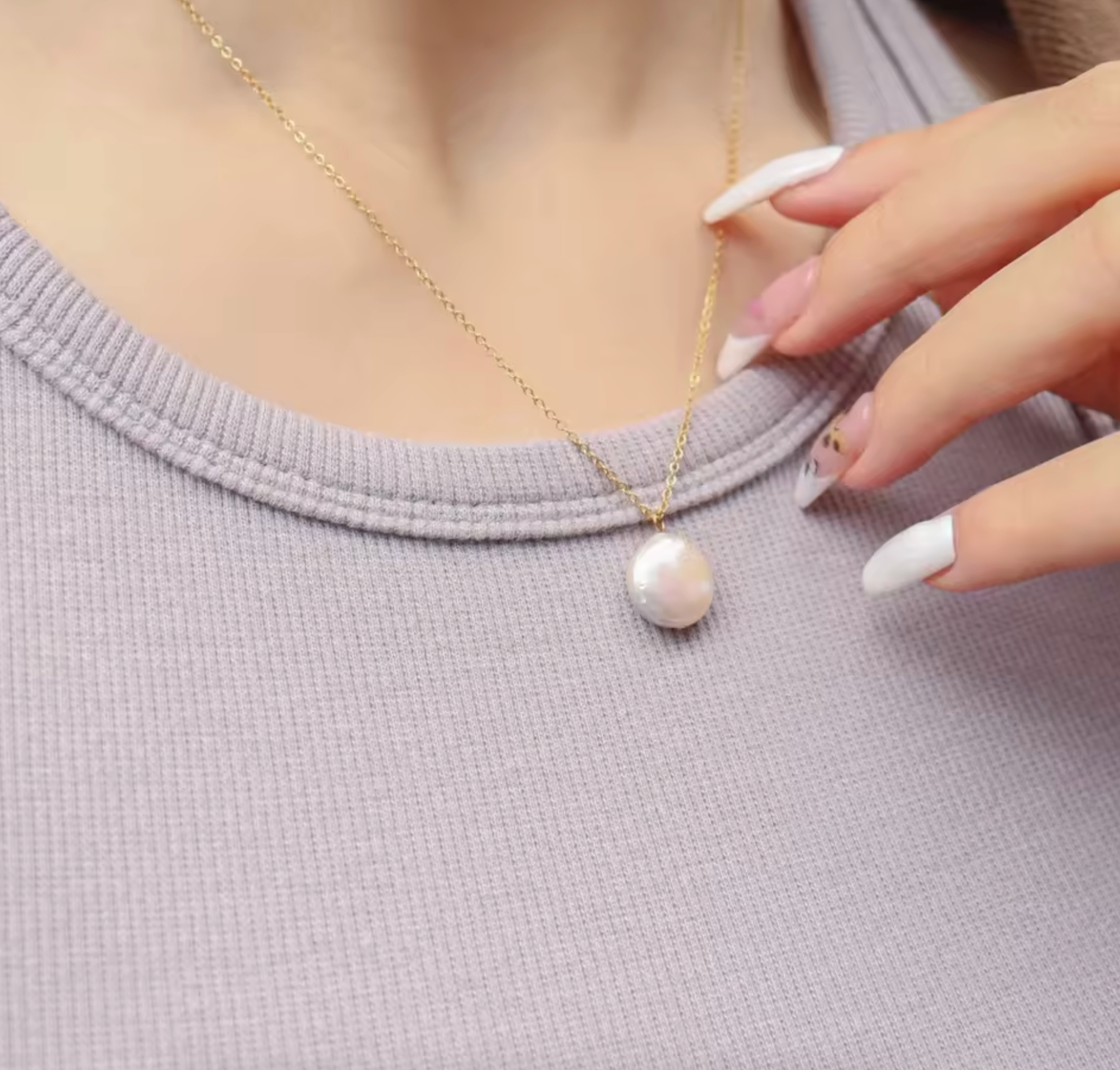 316Lサージカルステンレス ネックレス バロックパール【NY01725】