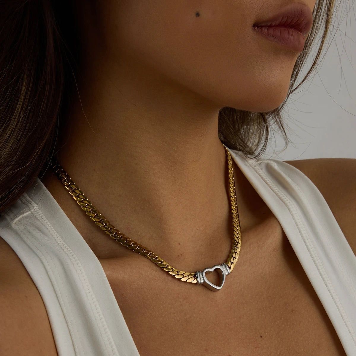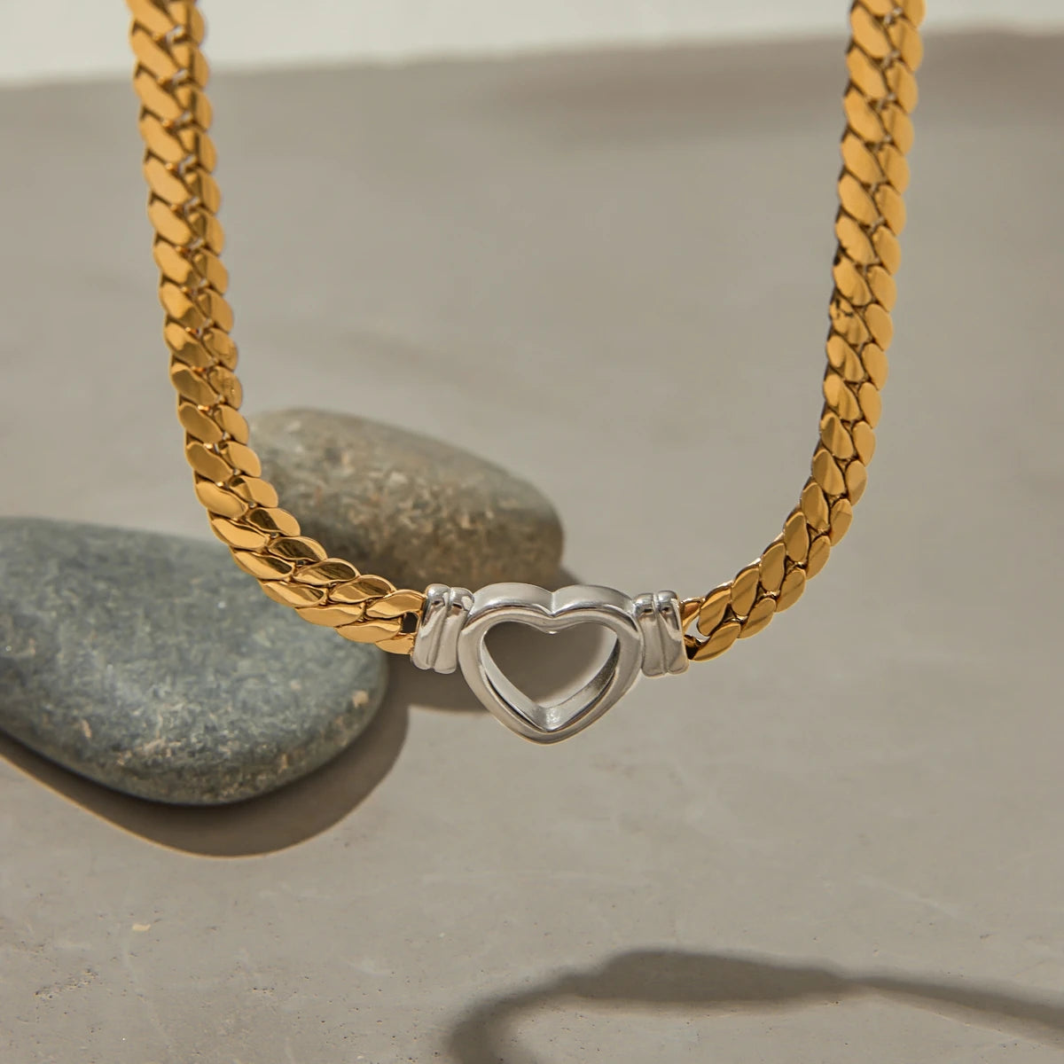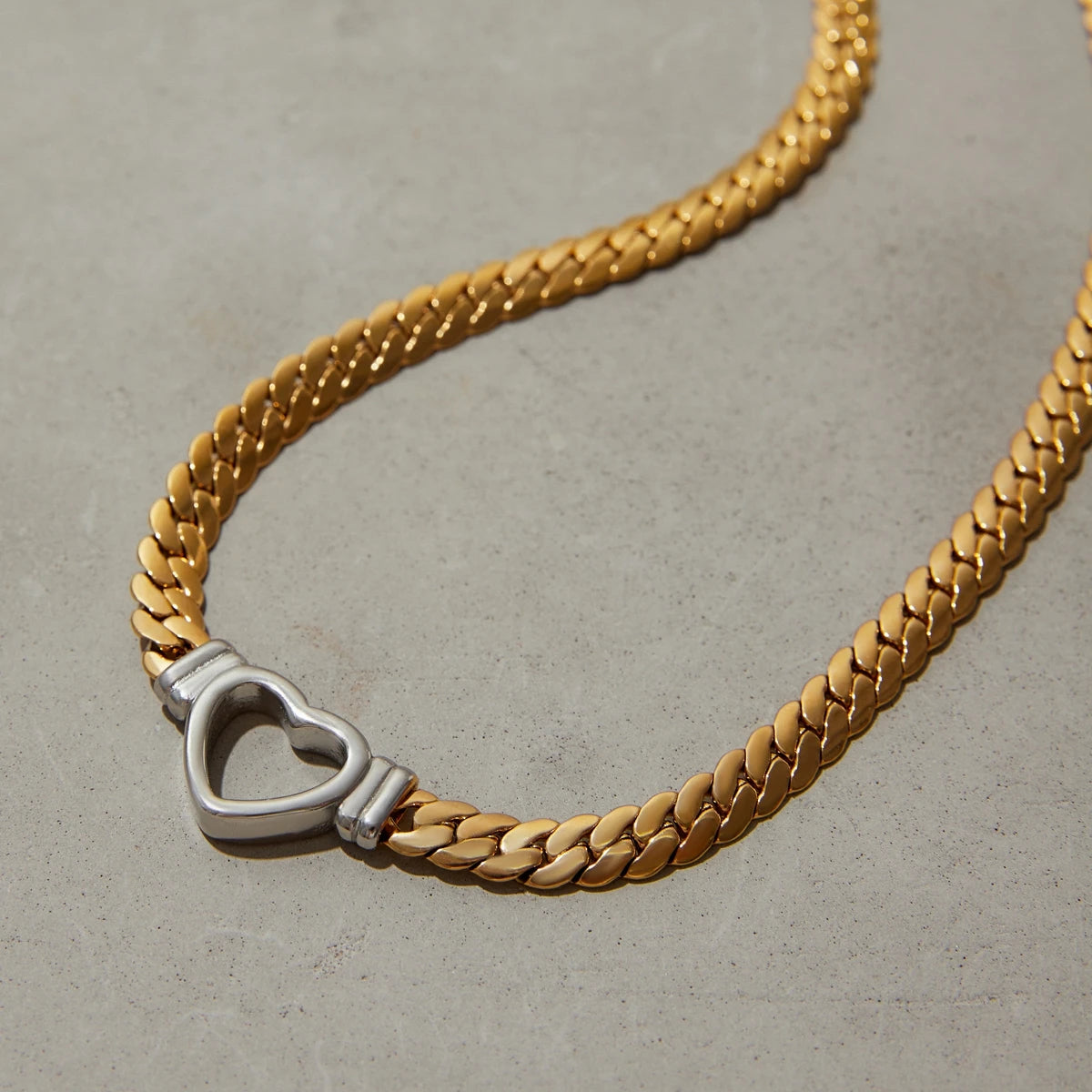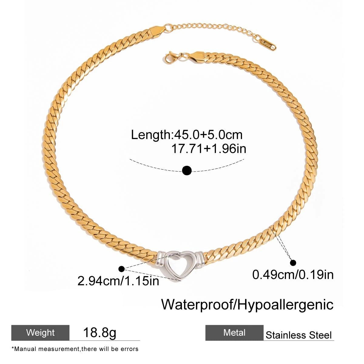 ステンレス304 ニッケルフリー 水に濡れても錆びにくい 18Kゴールドメッキ ネックレス スネークチェーン ハート 【YJ00081】