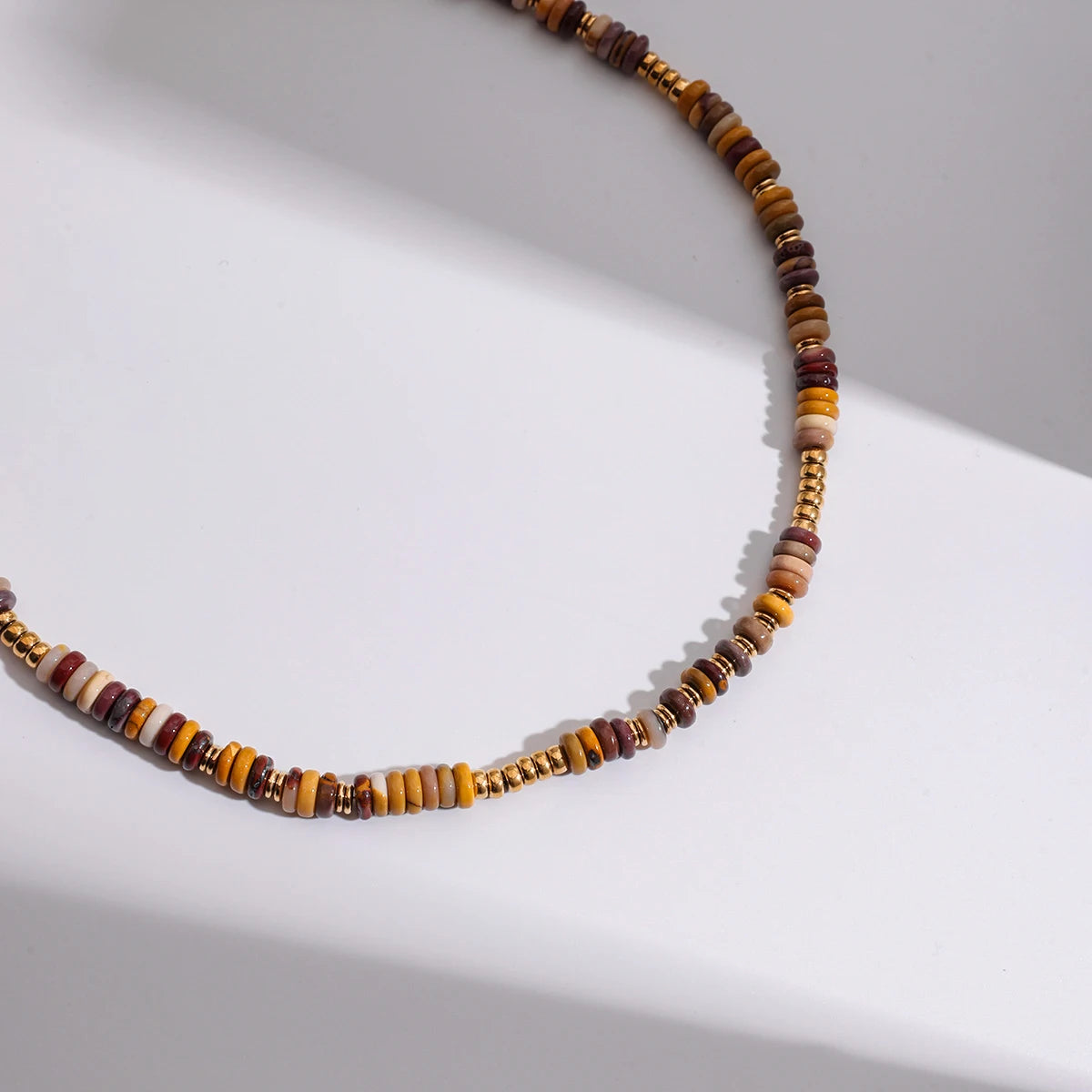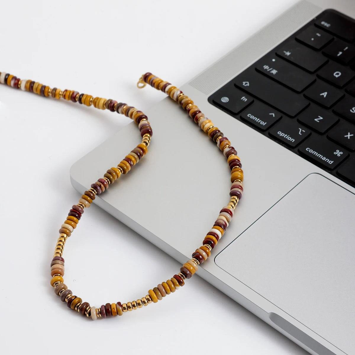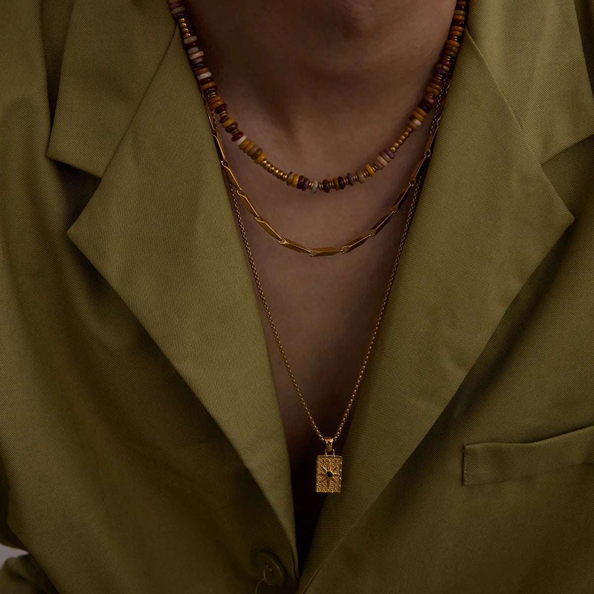 ステンレス304 ニッケルフリー 水に濡れても錆びにくい 18Kゴールドメッキ ネックレス 天然石風ストーン 【YJ00258】