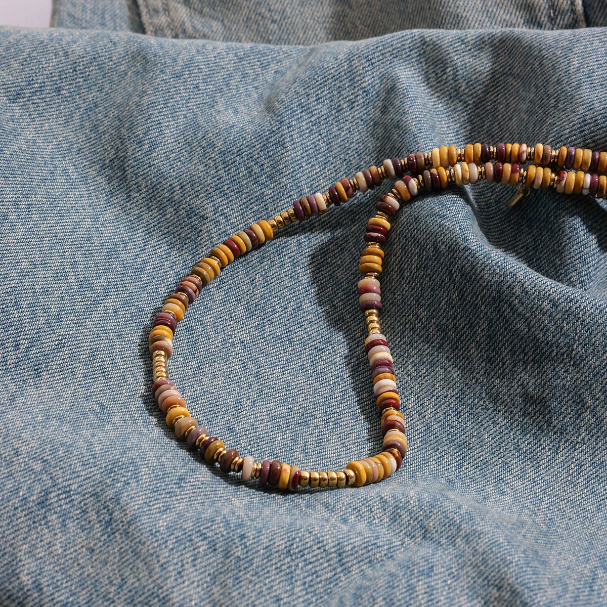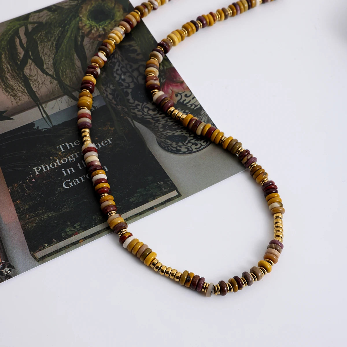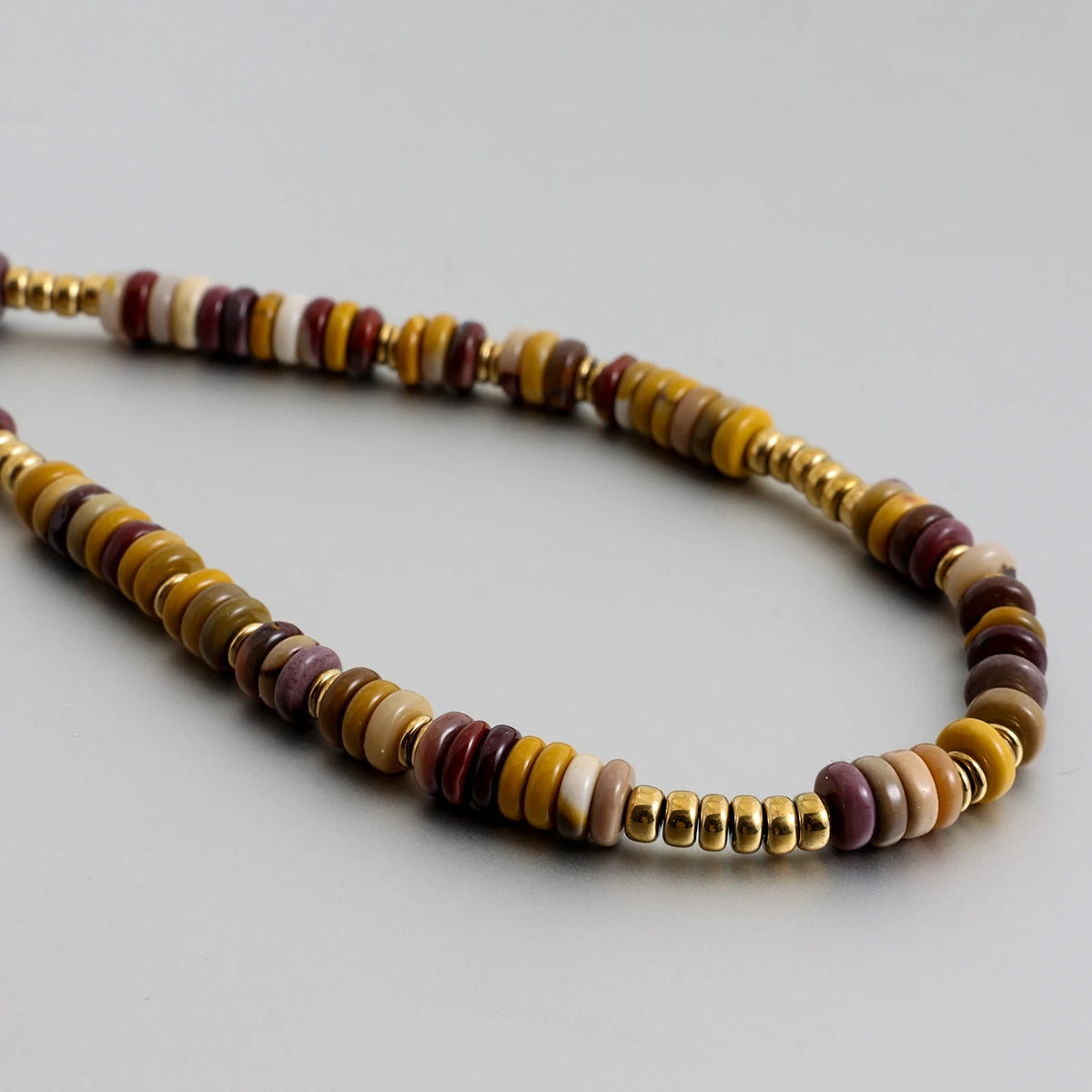 ステンレス304 ニッケルフリー 水に濡れても錆びにくい 18Kゴールドメッキ ネックレス 天然石風ストーン 【YJ00258】