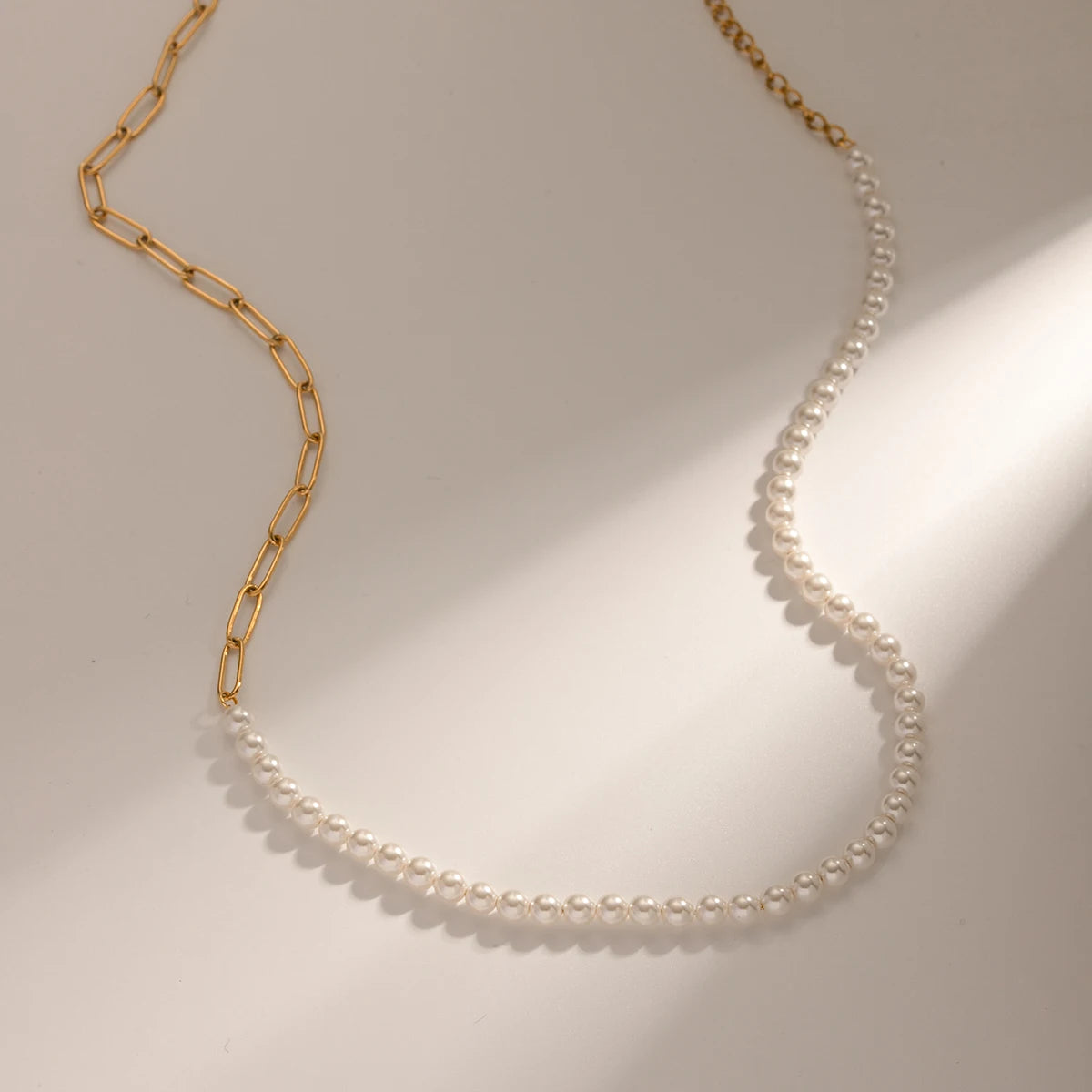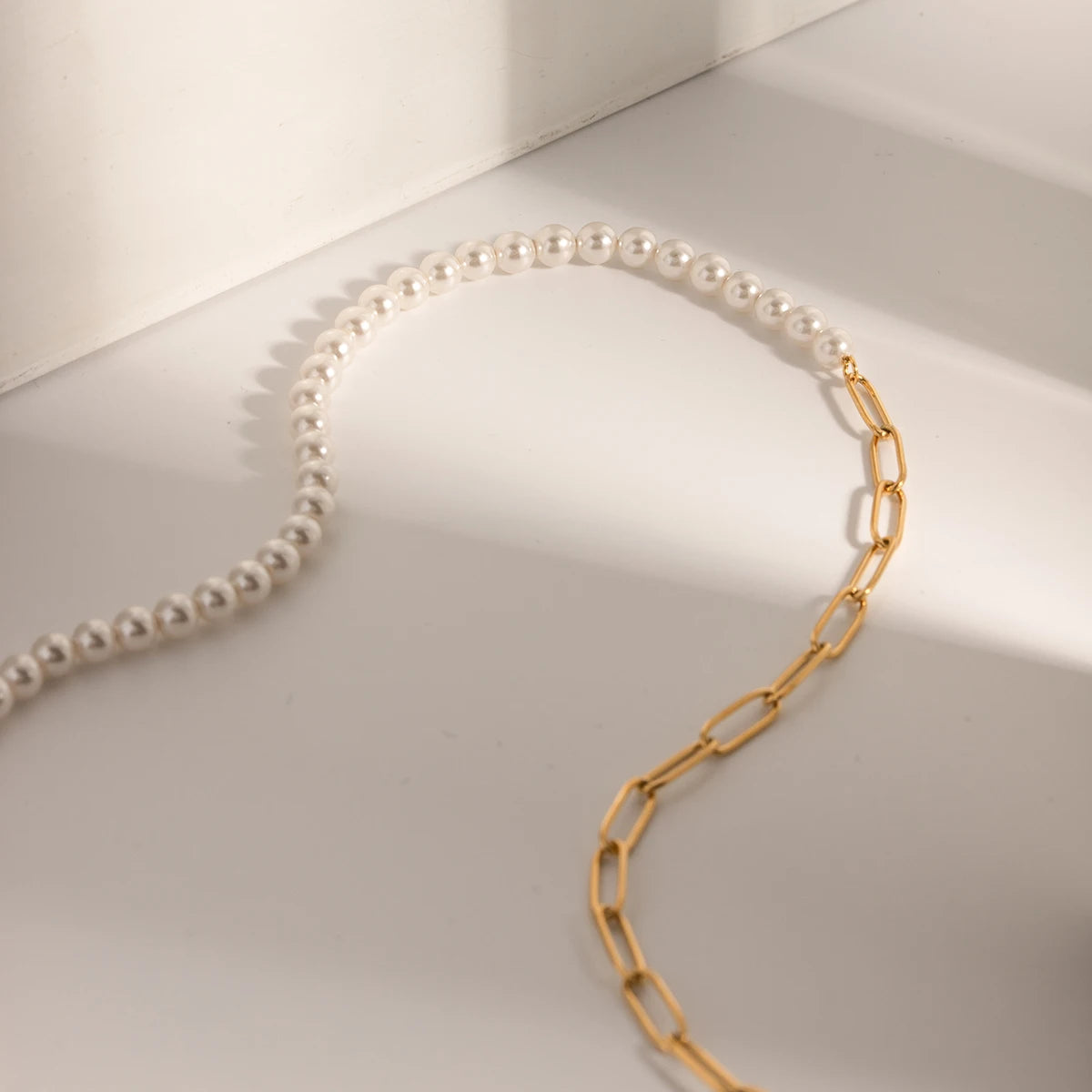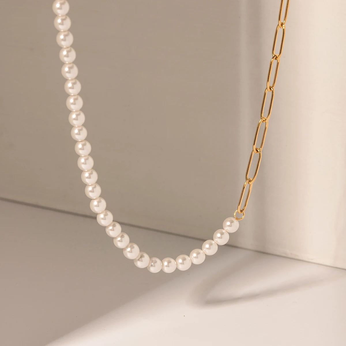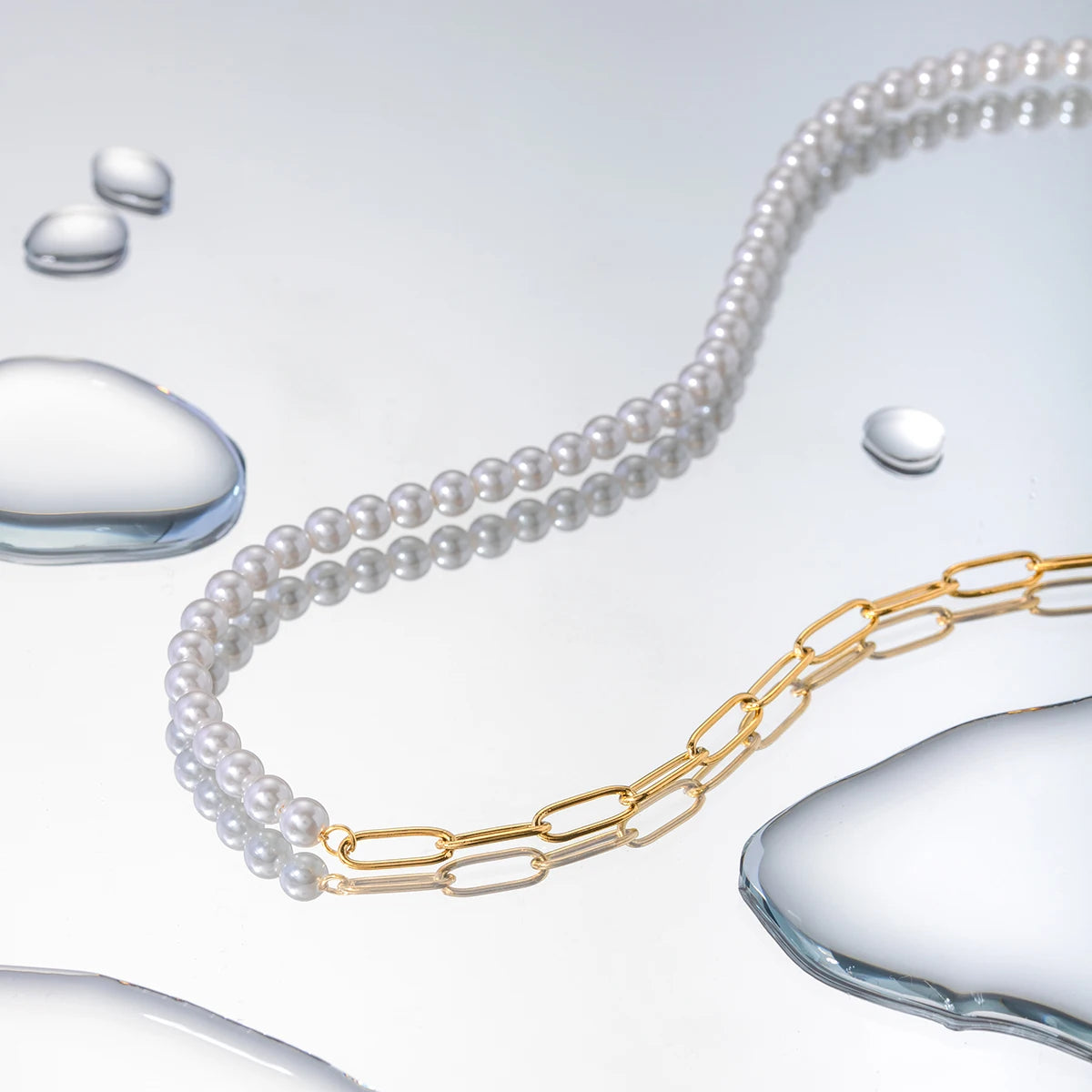 ステンレス304 ニッケルフリー 水に濡れても錆びにくい 18Kゴールドメッキ チェーン ネックレス パール 【YJ00535】