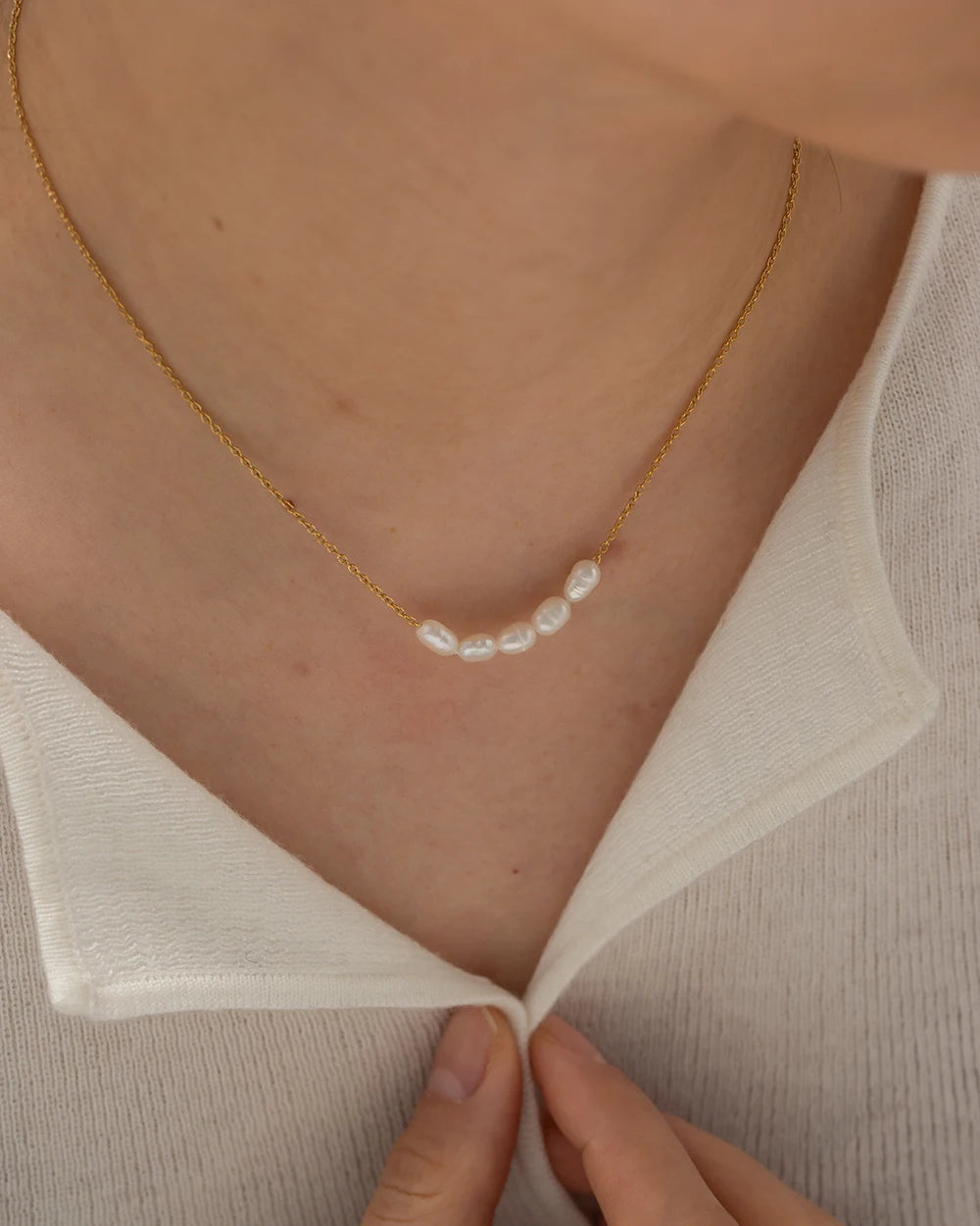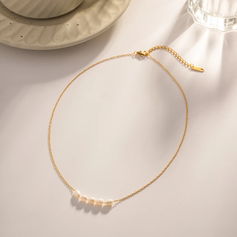 ステンレス304 ニッケルフリー 水に濡れても錆びにくい 18Kゴールドメッキ チェーン ネックレス パール 【YJ00652】