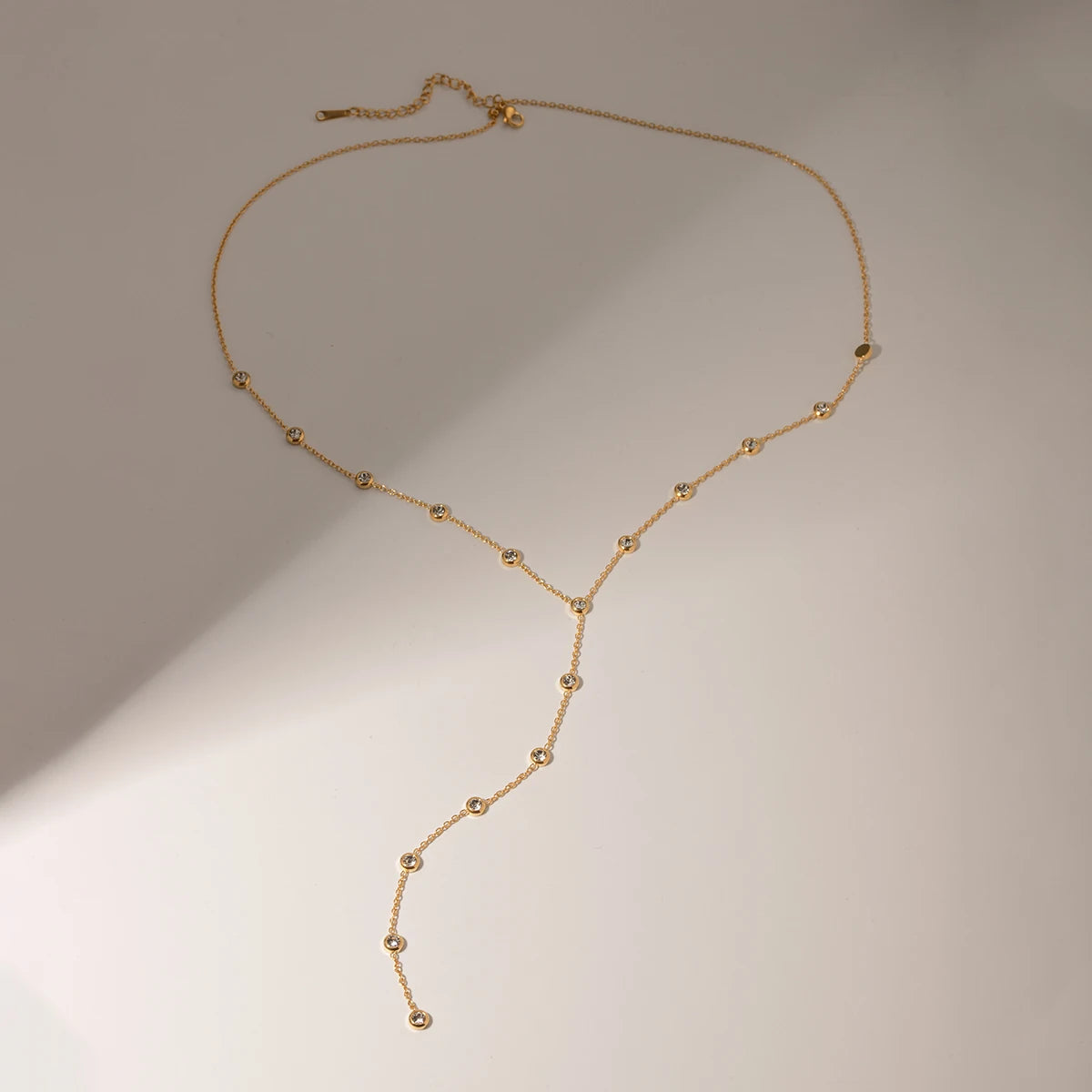 ステンレス304 ニッケルフリー 水に濡れても錆びにくい 18Kゴールドメッキ チェーン ネックレス ジルコニア 【YJ00659】